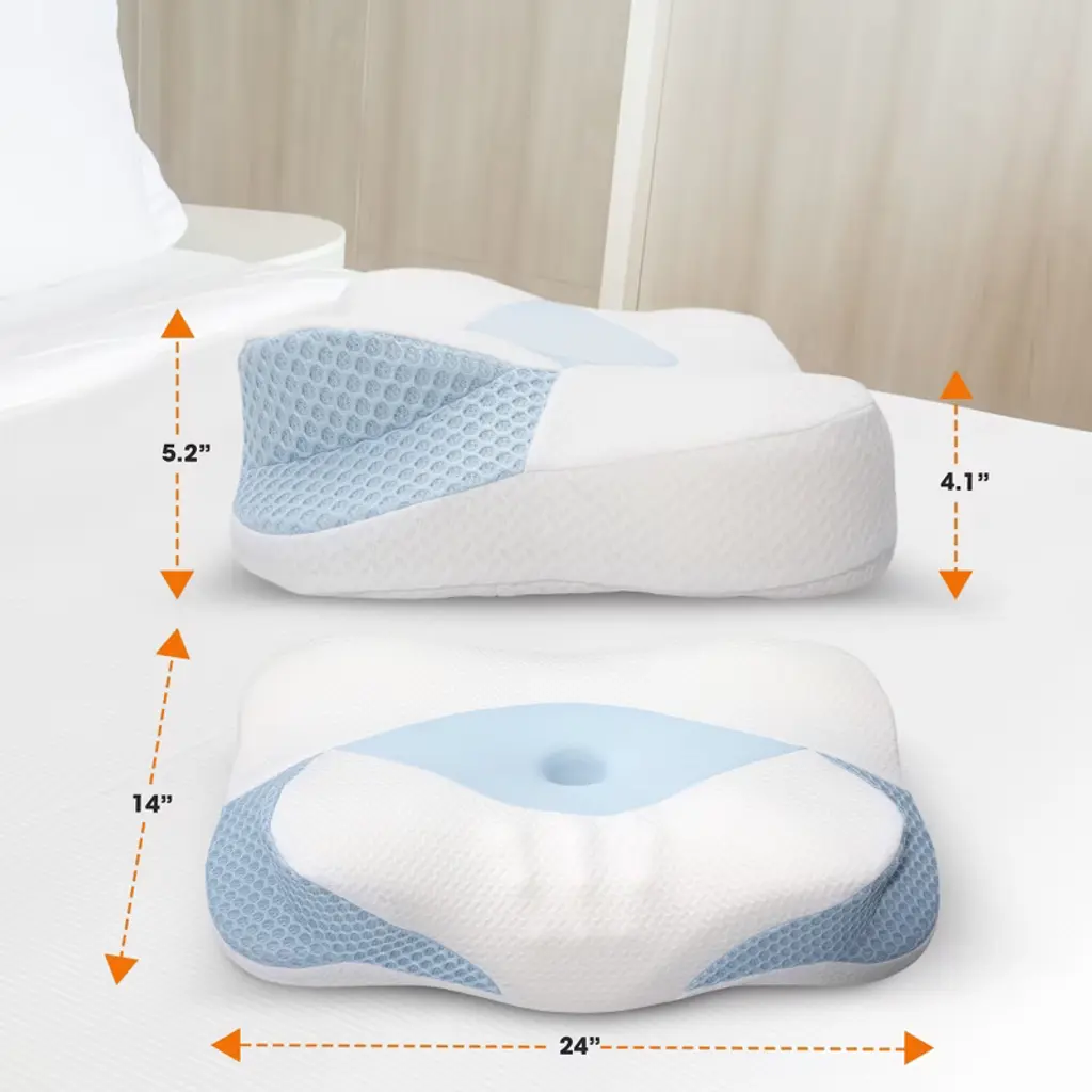Sleep deeper and wake up refreshed with the Cheer Collection Cervical Memory Foam Pillow, designed to support your neck and shoulders in perfect alignment. Measuring 24" x 14" x 5.2", this orthopedic contour pillow features a center cavity for head cradling and raised sides for shoulder support, making it ideal for back, side, and stomach sleepers. The premium memory foam adapts to your body shape while maintaining its structure night after night. Its breathable cover keeps you cool and dry, and the built-in zipper makes it easy to remove for machine washing. Whether you're improving posture, relieving pain, or simply upgrading your rest, this pillow offers the comfort and stability you need