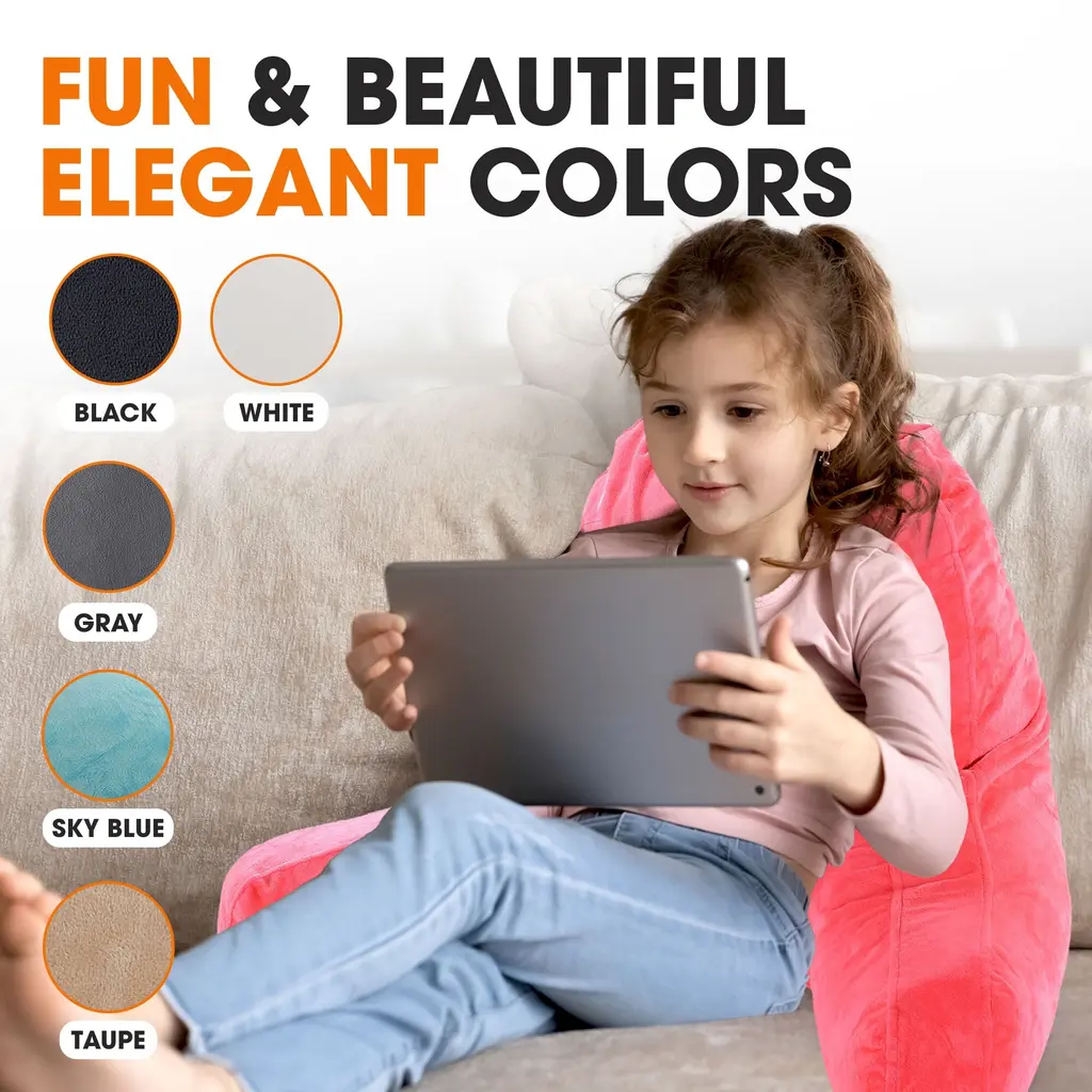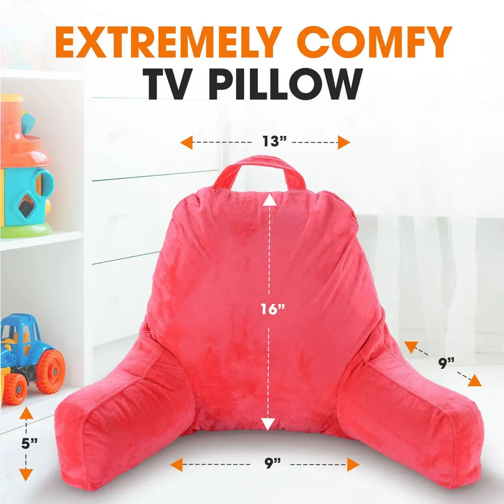 Introducing the Cheer Collection Cozy Comfort Hollow Fiber Fill TV & Reading Pillow for Children – the perfect companion for your little ones' reading, gaming, and movie sessions! Crafted with a soft microplush fabric and generously filled with plush hollow fiber, this sitting pillow is designed to provide ultimate comfort and support for their arms, back, and shoulders. Whether sitting up in bed, studying, or relaxing on the floor, the pillow's ergonomic design helps prevent slouching, reducing aches and pains. The sturdy top handle and lightweight construction make it easy to transport from room to room, ideal for versatile use. Choose from a variety of vibrant colors to match your child's style. The removable zippered cover allows for convenient machine washing, ensuring easy maintenance. Please note that the pillow is vacuum-packed for shipping purposes; allow 24 hours after opening for it to regain its full size.