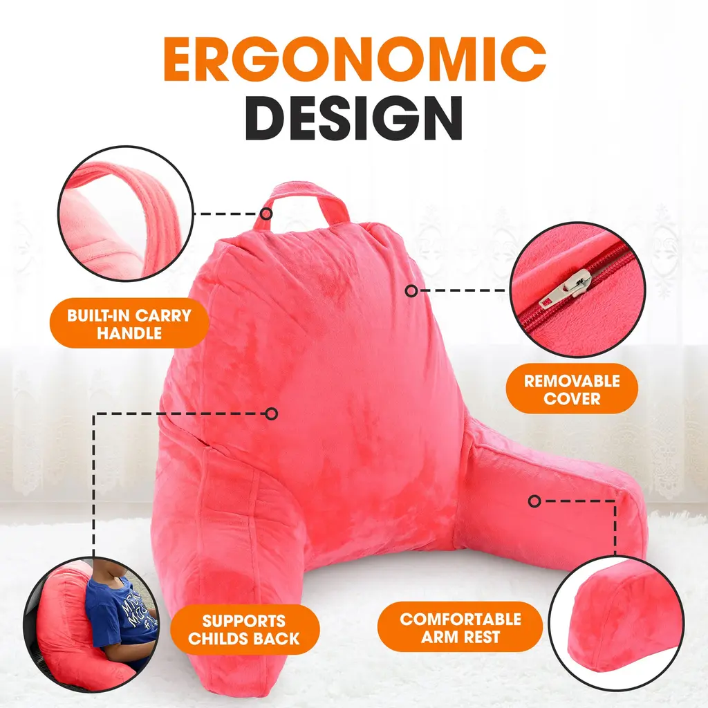 Cheer Collection Kids Size Reading And Backrest Pillow With Armrest - Hot Pink