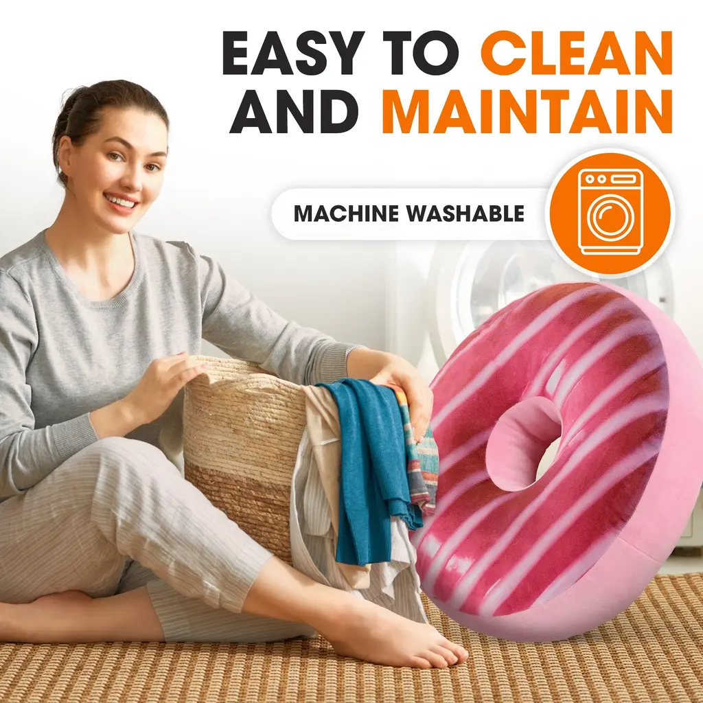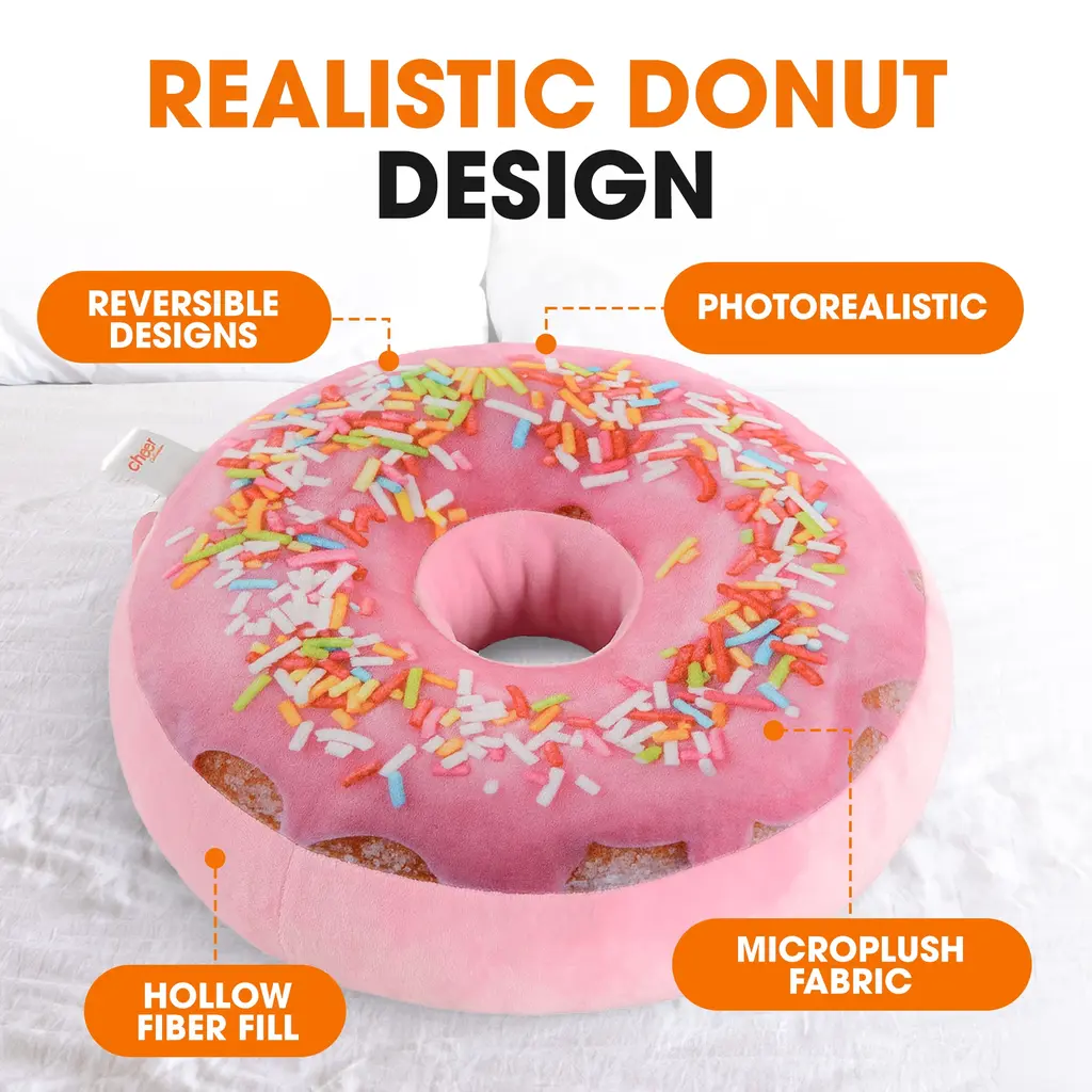 Add a playful touch to your home decor with the Cheer Collection Reversible Plush Donut Throw Pillow. This yummy treat of a pillow is made of soft plush fabric with a photoreal print on both sides. Its comfortable and reversible design makes it a fun addition to any room in your home.Features:Other section: