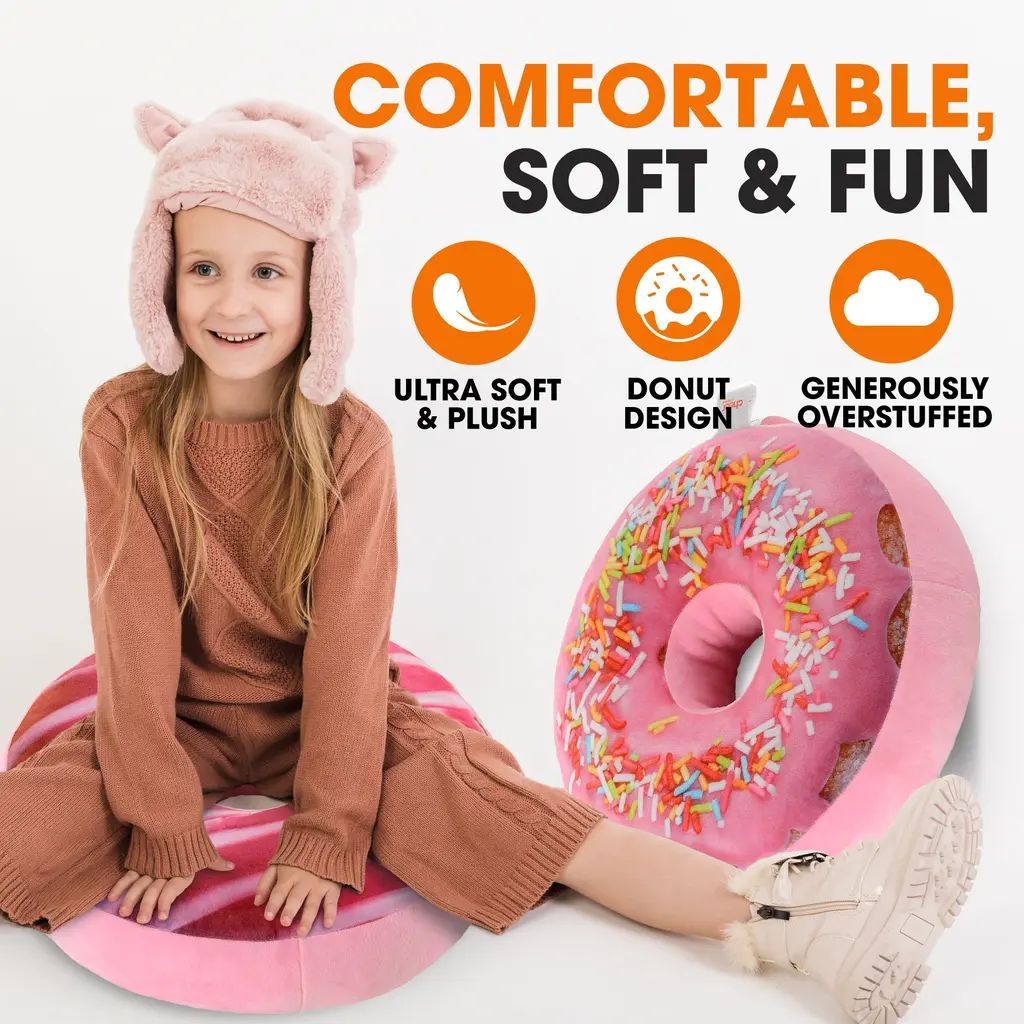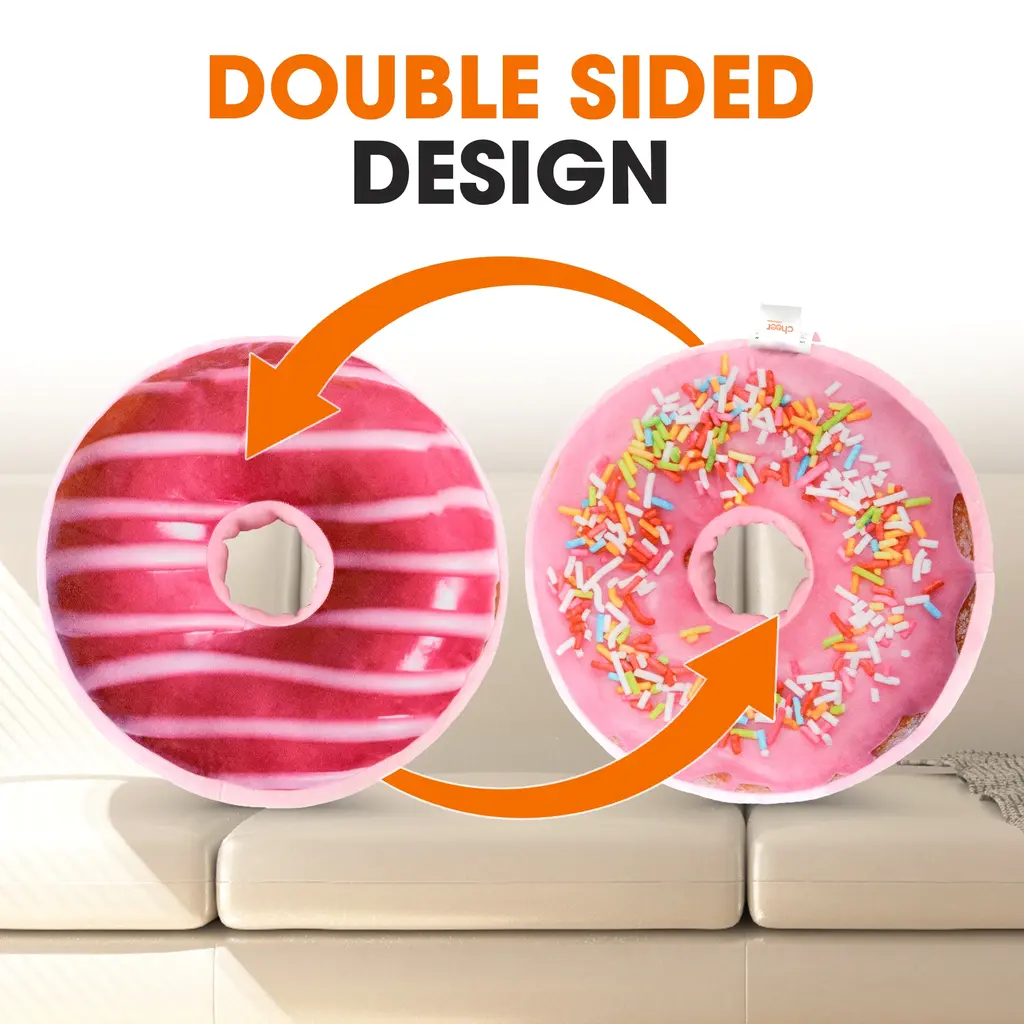 Cheer Collection Reversible Plush Donut Throw Pillow - Pink Glaze / Rainbow Sprinkles