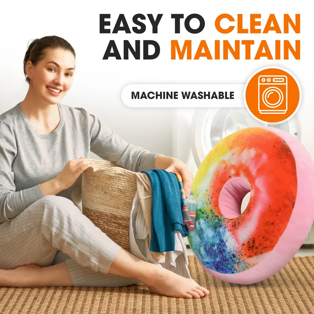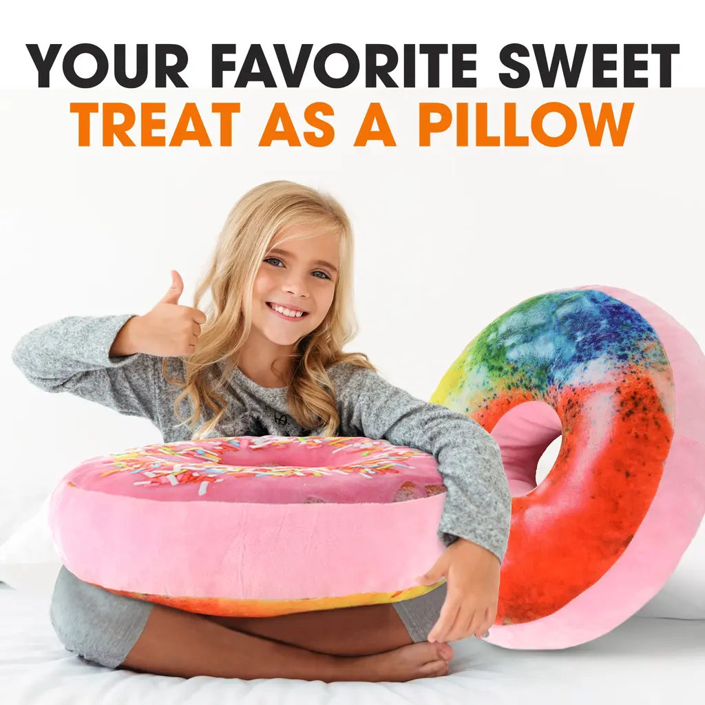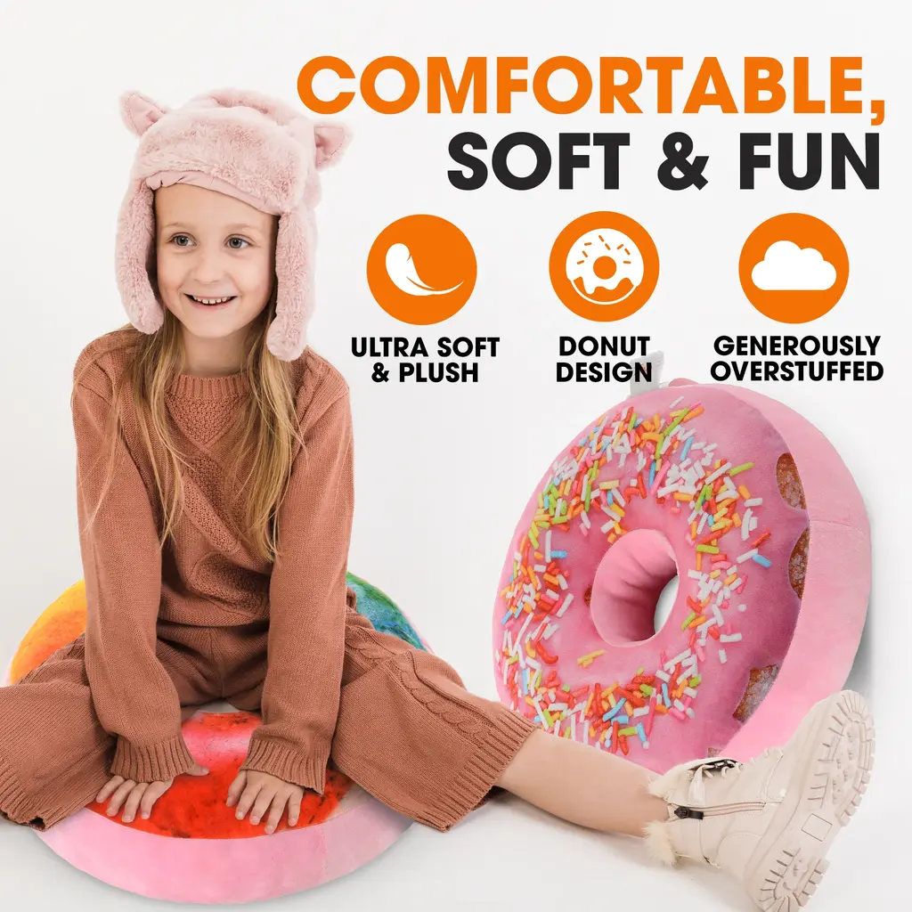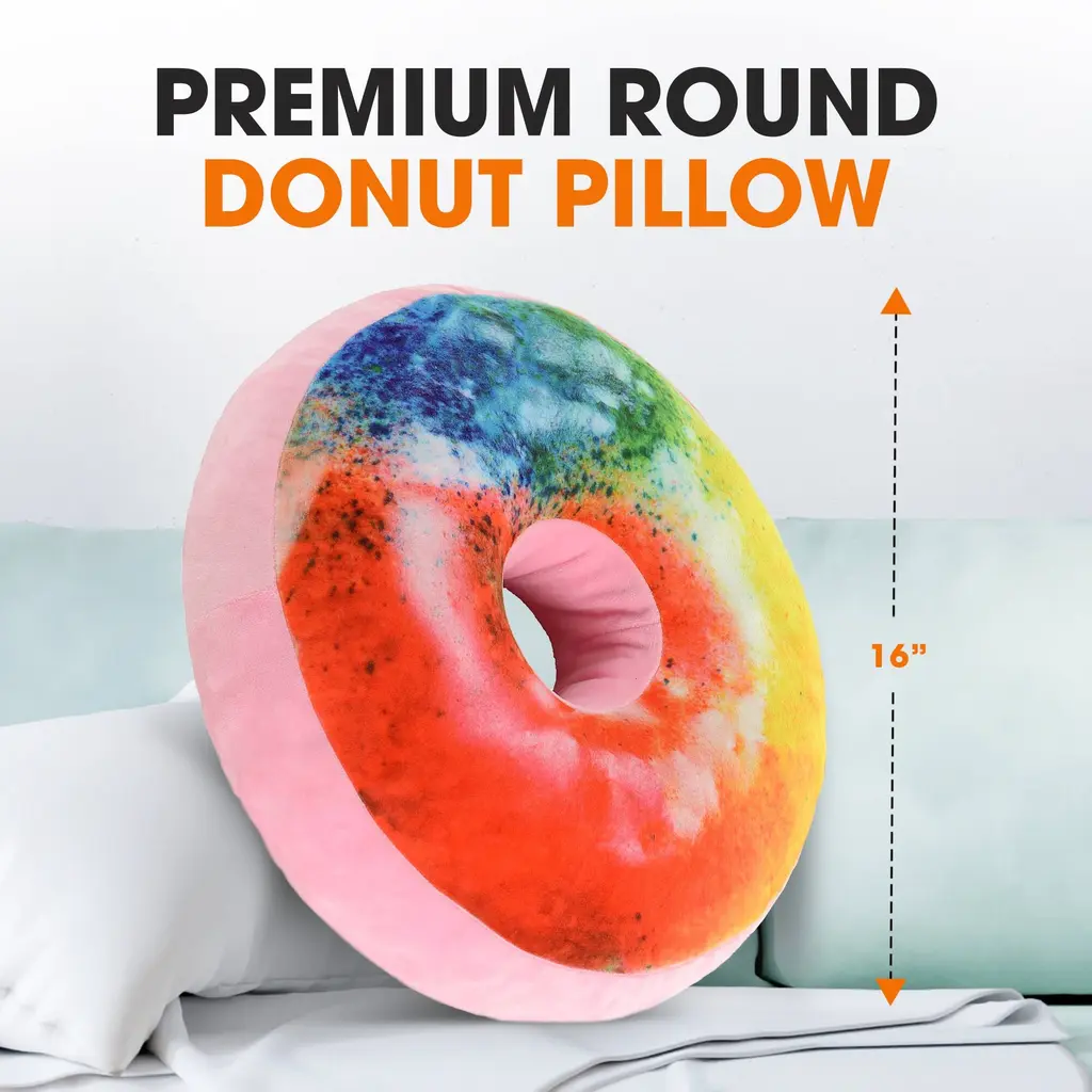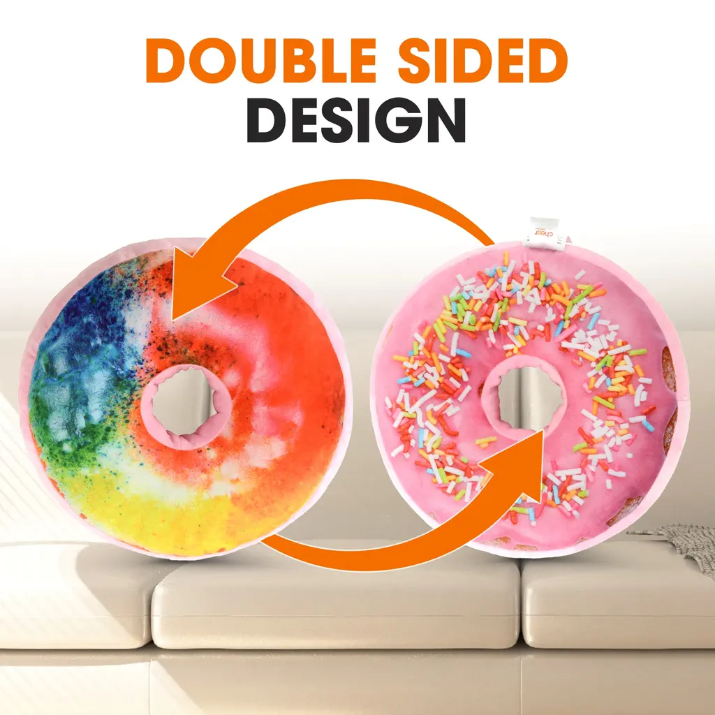 Cheer Collection Reversible Plush Donut Throw Pillow - Rainbow Icing / Rainbow Sprinkles
