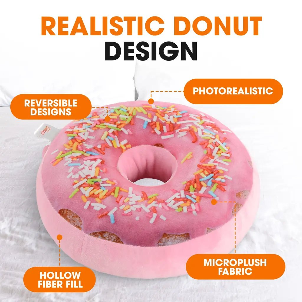 Add a playful touch to your home decor with the Cheer Collection Reversible Plush Donut Throw Pillow. This yummy treat of a pillow is made of soft plush fabric with a photoreal print on both sides. Its comfortable and reversible design makes it a fun addition to any room in your home.Features:Other section:
