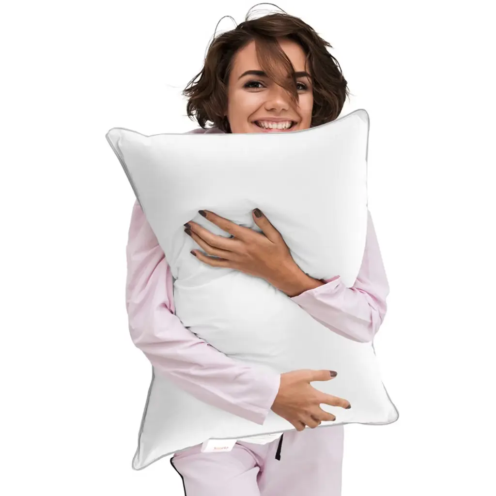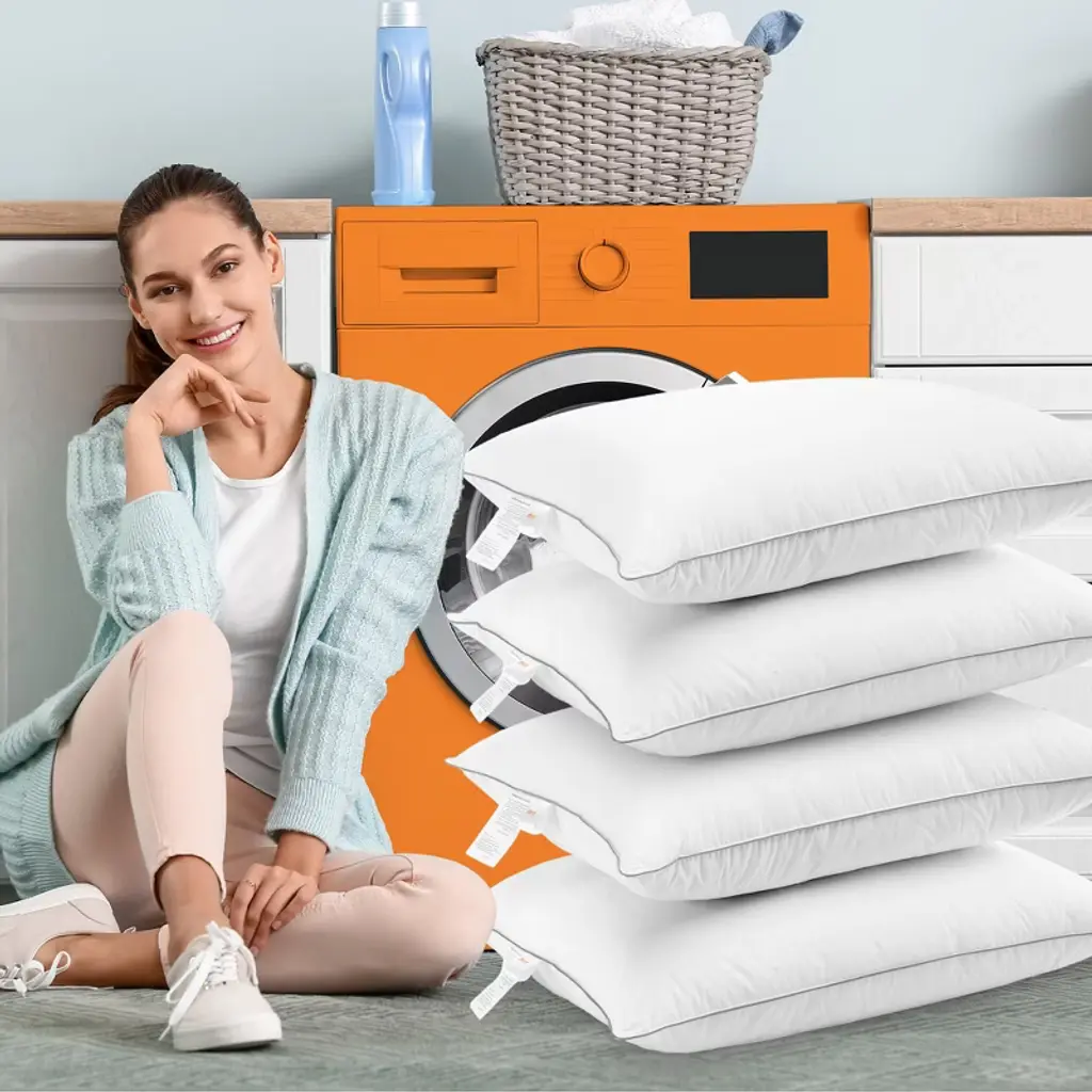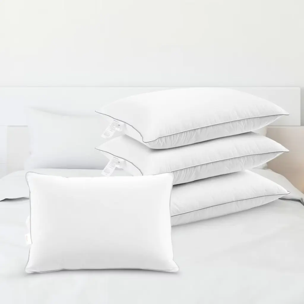 Indulge in unparalleled warmth, loft, comfort, and coziness with the Cheer Collection Down Alternative Pillows. Crafted with precision, these luxurious pillows are designed with double-needle stitching and finished with classic piped edging, adding an elegant touch to any bedding ensemble. Perfect for allergy sufferers, these hypoallergenic pillows provide the utmost breathability relief, allowing you to enjoy a peaceful and uninterrupted night's sleep. The alternative down filling, made from 100 percent polyester microfiber, offers the sumptuous feel of down without the high maintenance requirements. With a medium firmness level, these soft pillows effortlessly conform to the contours of your neck, head, and shoulders, promoting a more restful slumber. Worried about keeping them fresh? Worry no more! These pillows are conveniently machine washable, making laundering a breeze. Each package includes a set of four standard pillows, ensuring you have everything you need for a blissful night's rest. Whether you're a back, side, or stomach sleeper, these pillows provide the ideal support to suit your needs. These luxurious standard-size pillows, measure 20 inches wide x 28 inches long, with 27 ounces of fill. Experience the ultimate in comfort and luxury with the Cheer Collection Down Alternative Pillows. Upgrade your sleep experience today and say hello to a rejuvenating night's rest!