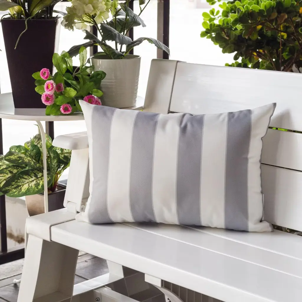Chery Life 14" X 20" Horizon Stripe Pillow, Outdoor & Indoor Use, Silver