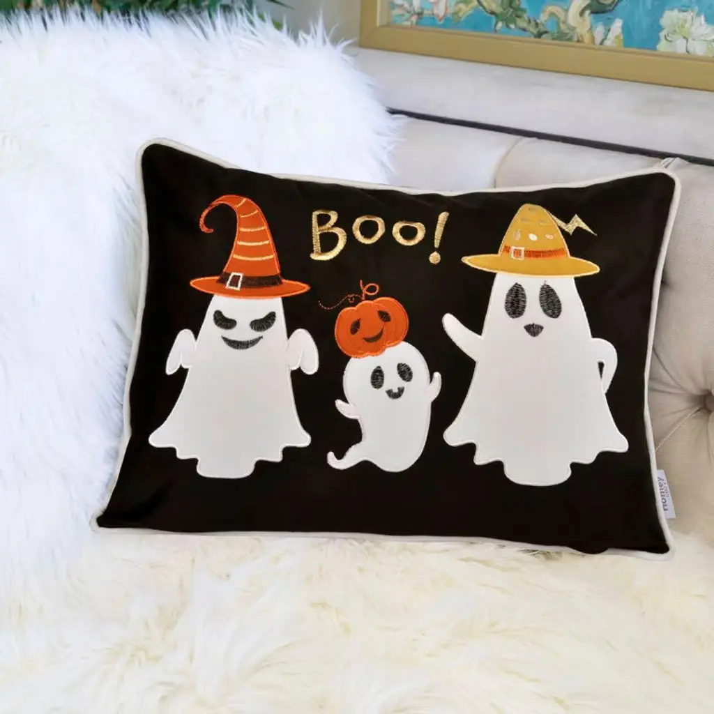 Chery Life 14x20" Halloween Boo Ghost Velvet Throw Pillow, Black