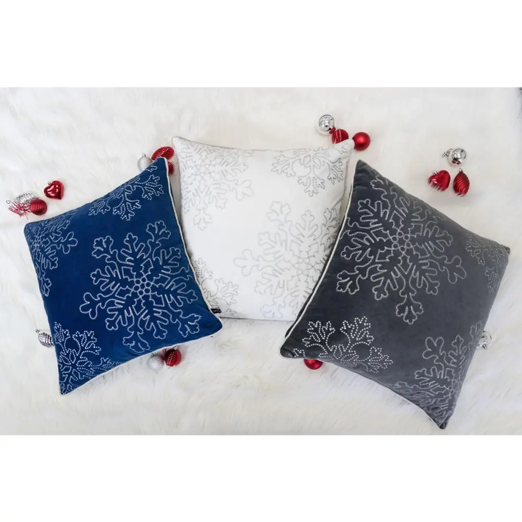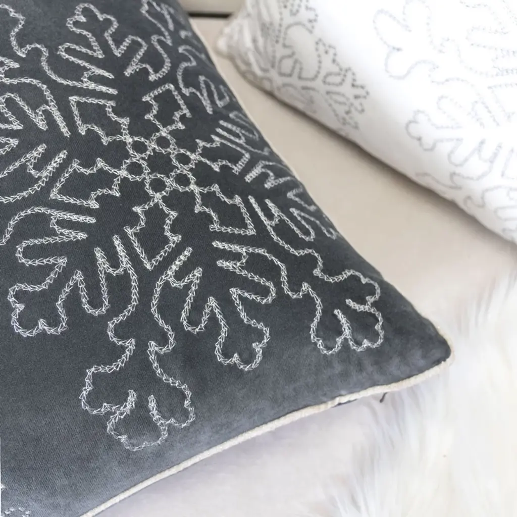 Chery Life 20x20" Velvet Holiday Throw Pillow With Silver Snowflake Embroidery & Insert, Gray