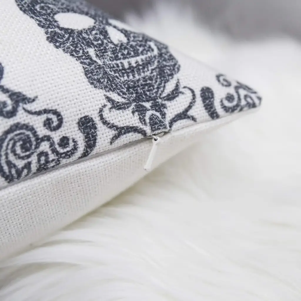 Chery Life Gothic Damask Skull Throw Pillow ̈C Black & White Cotton Linen