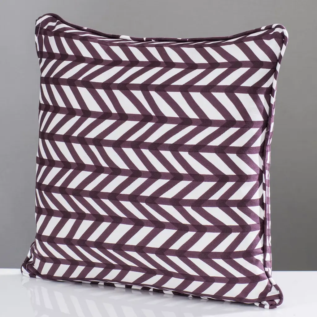 This elegant cushion has a down insert with a cover in 100% cotton decorated using the pigment printing technique with a striking herringbone pattern in maroon.