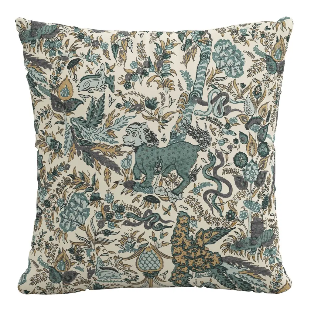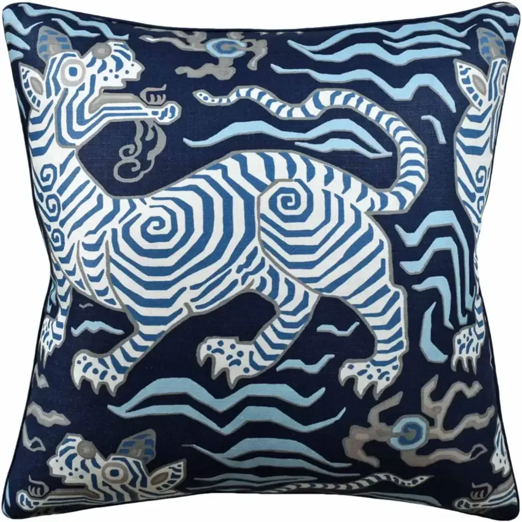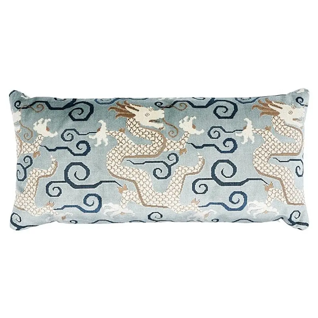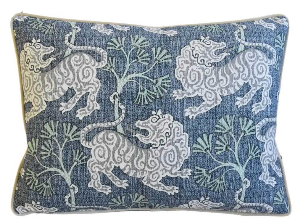 Chinoiserie Asian Blue Gray & Cream Lion Dragon Feather/down Pillow 24" X 18"