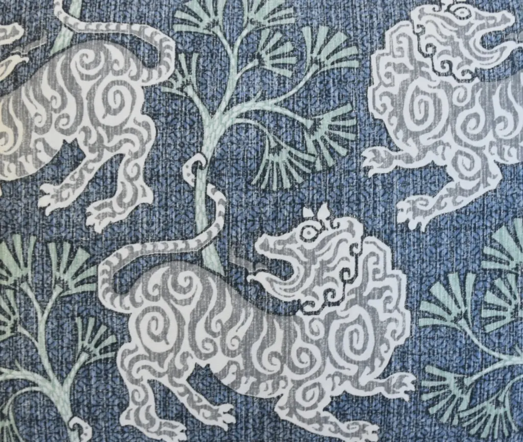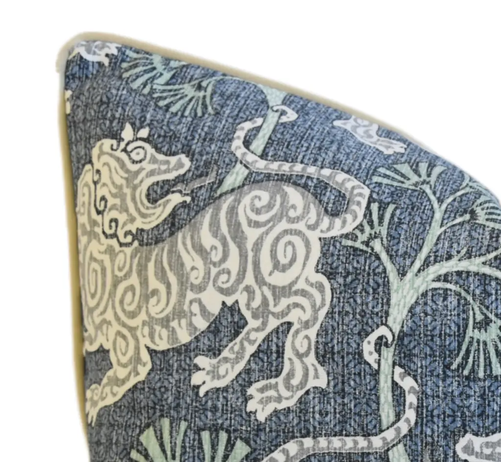 Chinoiserie Asian Blue Gray Lion Pillow