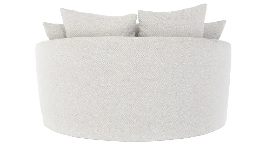 Off-white high-performance fabric covers the dramatic U shape Chloe Media Lounger for a spacious, sink-in sit. Throw pillows present an added touch of comfort to this sensibly styled media lounger, perfect for movie nights.