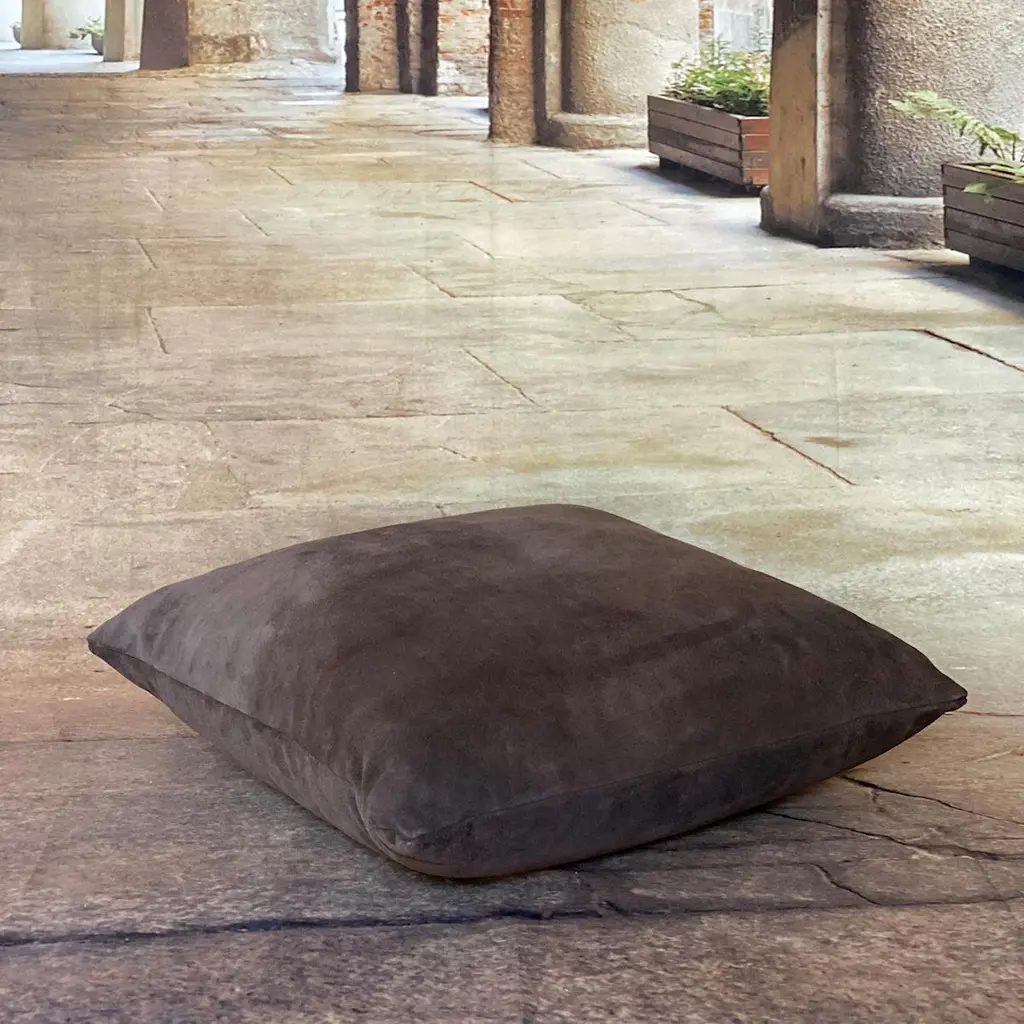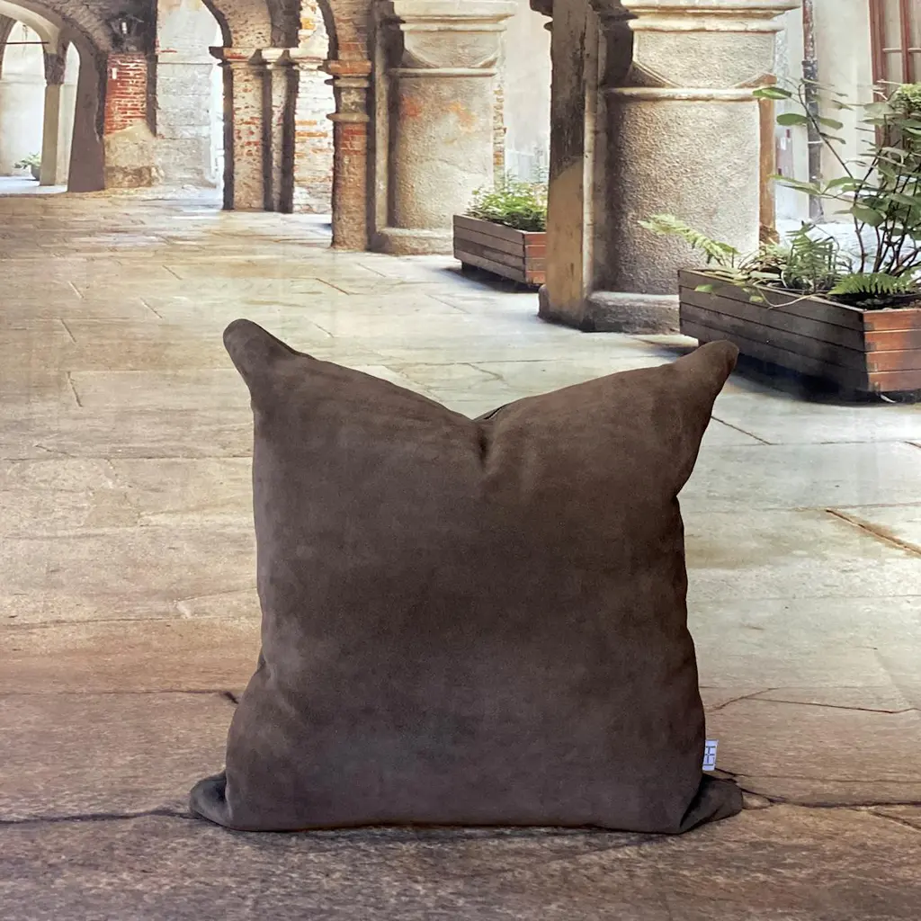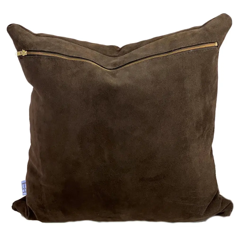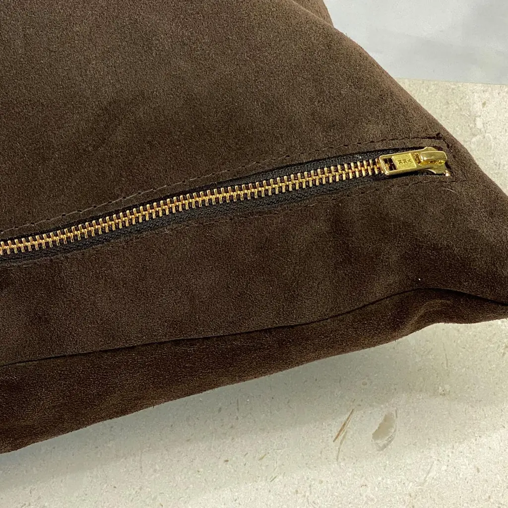 Delicious Chocolate brown, Spanish leather suede pillows, individually handcrafted in Australia, by leather artisans.Each brown leather pillow comes with a single front and back leather panel with a decorative brass metal back zipper, and is fitted with a pure feather insert for comfort styling.The brown suede pillows can be customized to any size and shape, with many other colors available in the Classic Suede Collection, by Emily Barbara.Features:dimensions: 47x47" - 18.5"Spanish leather suedeMetal Zipper detalingFitted with feather insertMade in Australianatural by-product.Suede leather is a natural product, therefore variations and markings may occur within the cushions.CAREProfessional Dry clean onlyKeep away from moistureDark colors may spread onto light colors.