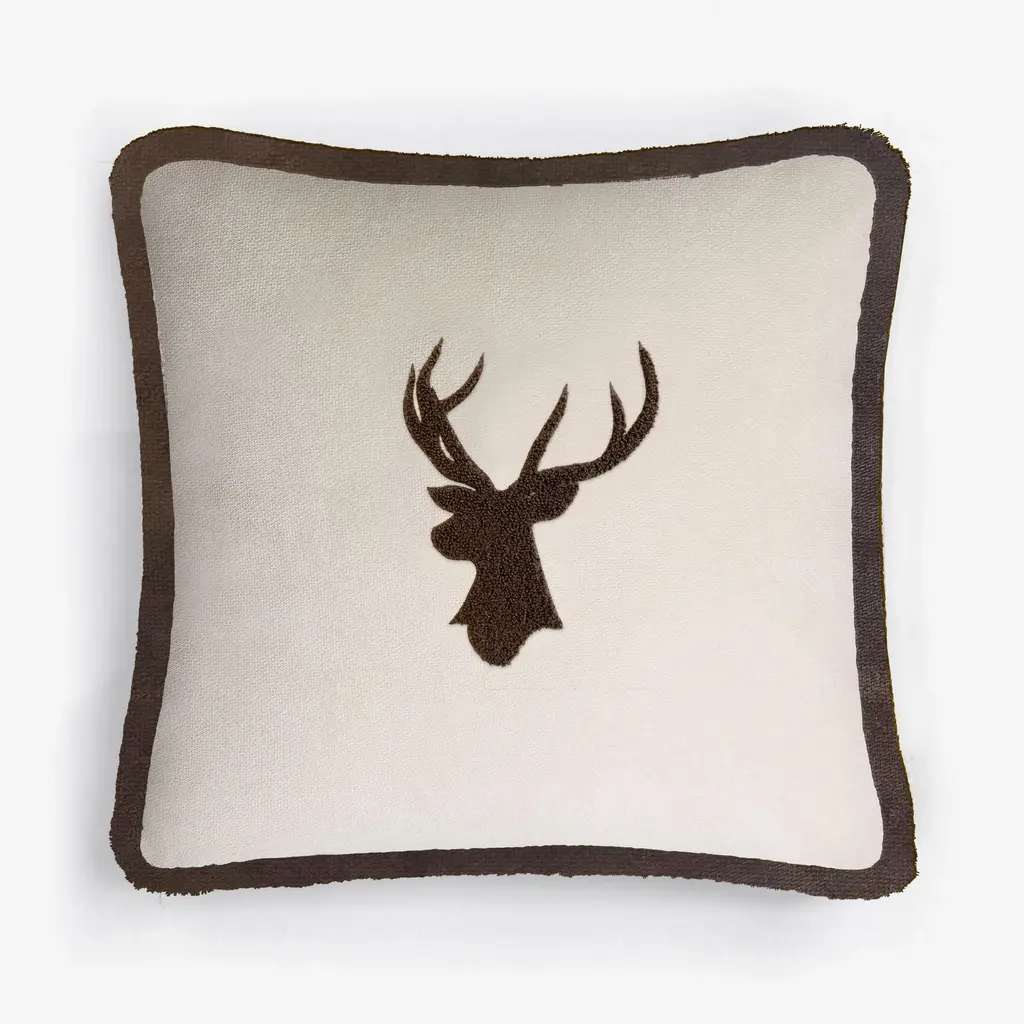 Christmas Happy Pillow With Elk In Beige And Brown From Lo Decor
