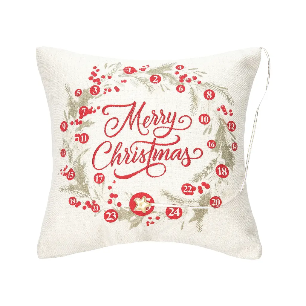 Christmas Merry & Bright Advent Decorative Accent Throw Pillow - White - Specialty - Embroidered