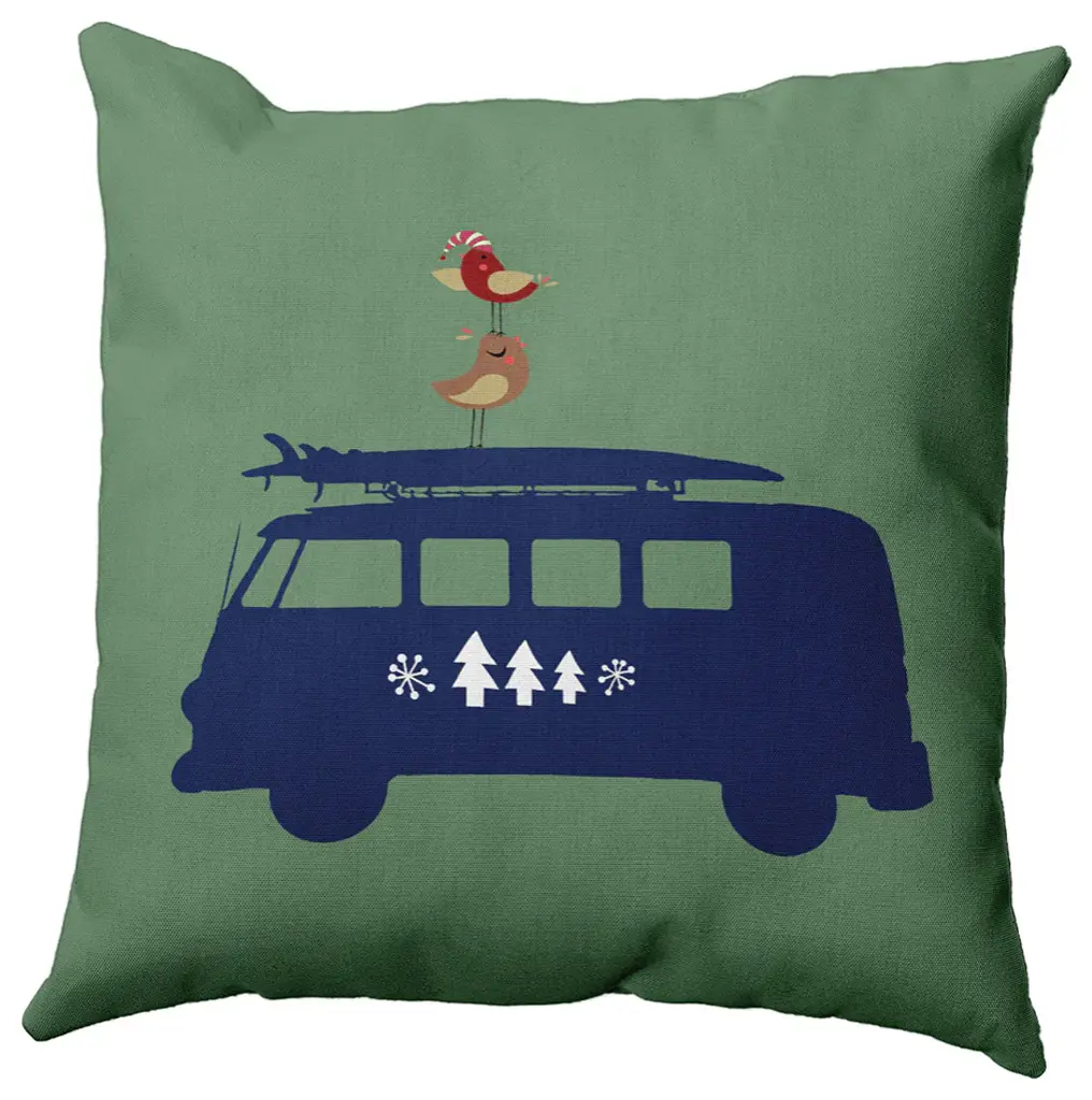 Christmas Surf Bird Accent Pillow, Succulent Green, 20"x20"