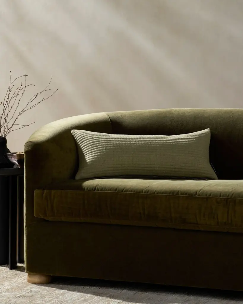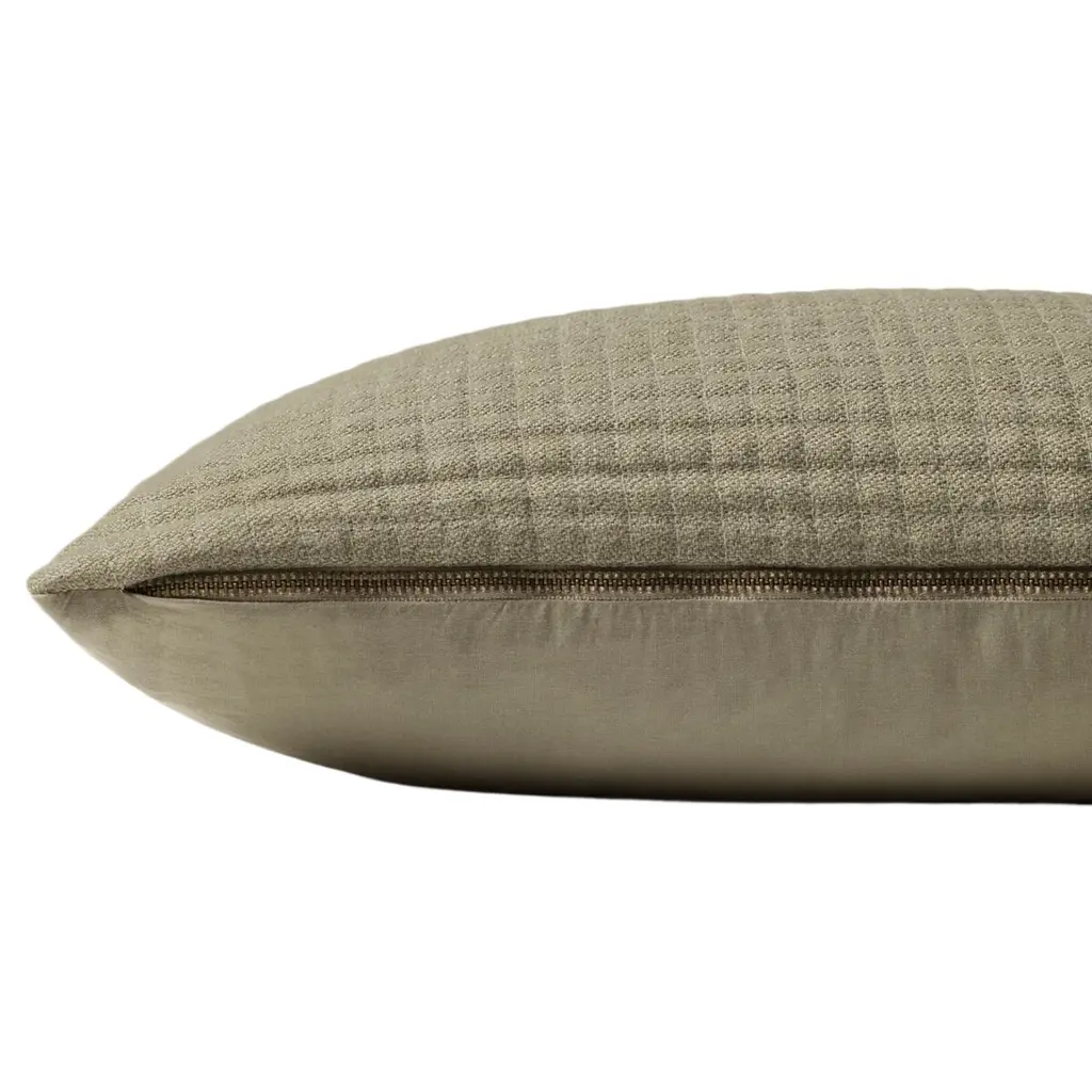 Christopher is a wonderfully soft, quilted throw pillow in sage green designed by Jeremiah Brent x Loloi. The 12” x 27” decorative pillow is made in India of polyester and cotton, an expertly crafted accent for modern home decor.