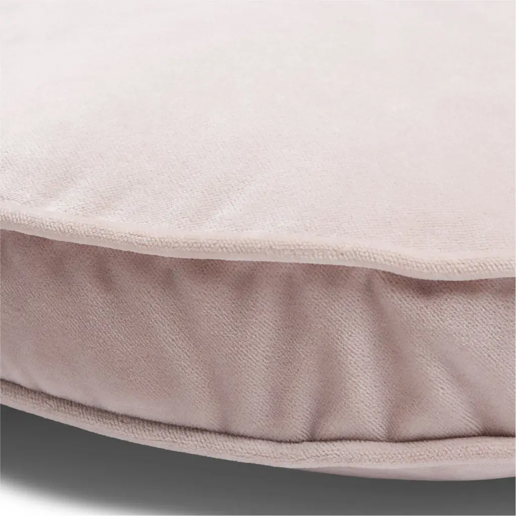 Designed by us and available only at One Kings Lane: Dress up a favorite sofa or chair with this disc-shaped pillow, made of plush velvet with self welting. We love how its unique shape adds a playful note. Insert included. Zipper closure.