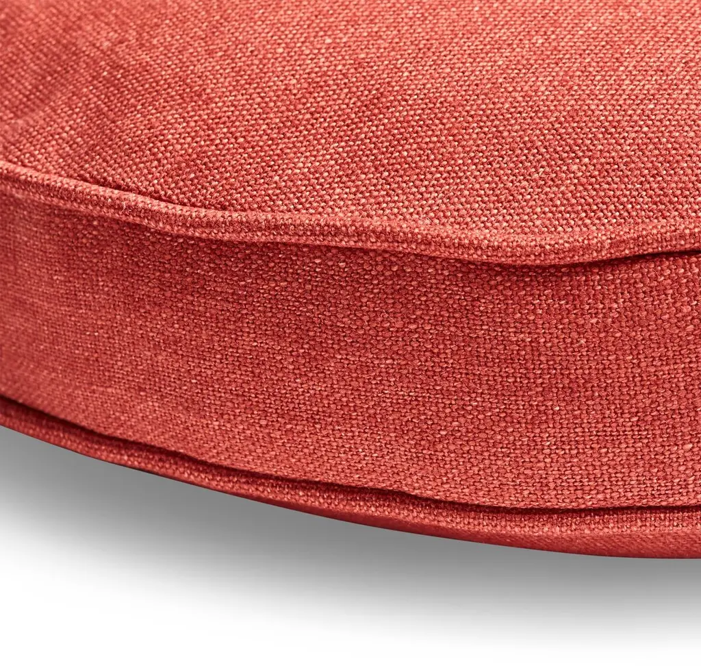 Designed by us and available only at One Kings Lane: Dress up a favorite sofa or chair with this disc-shaped pillow, made of wonderfully textural linen with self welting. We love how its unique shape adds a playful note. Insert included. Zipper closure.
