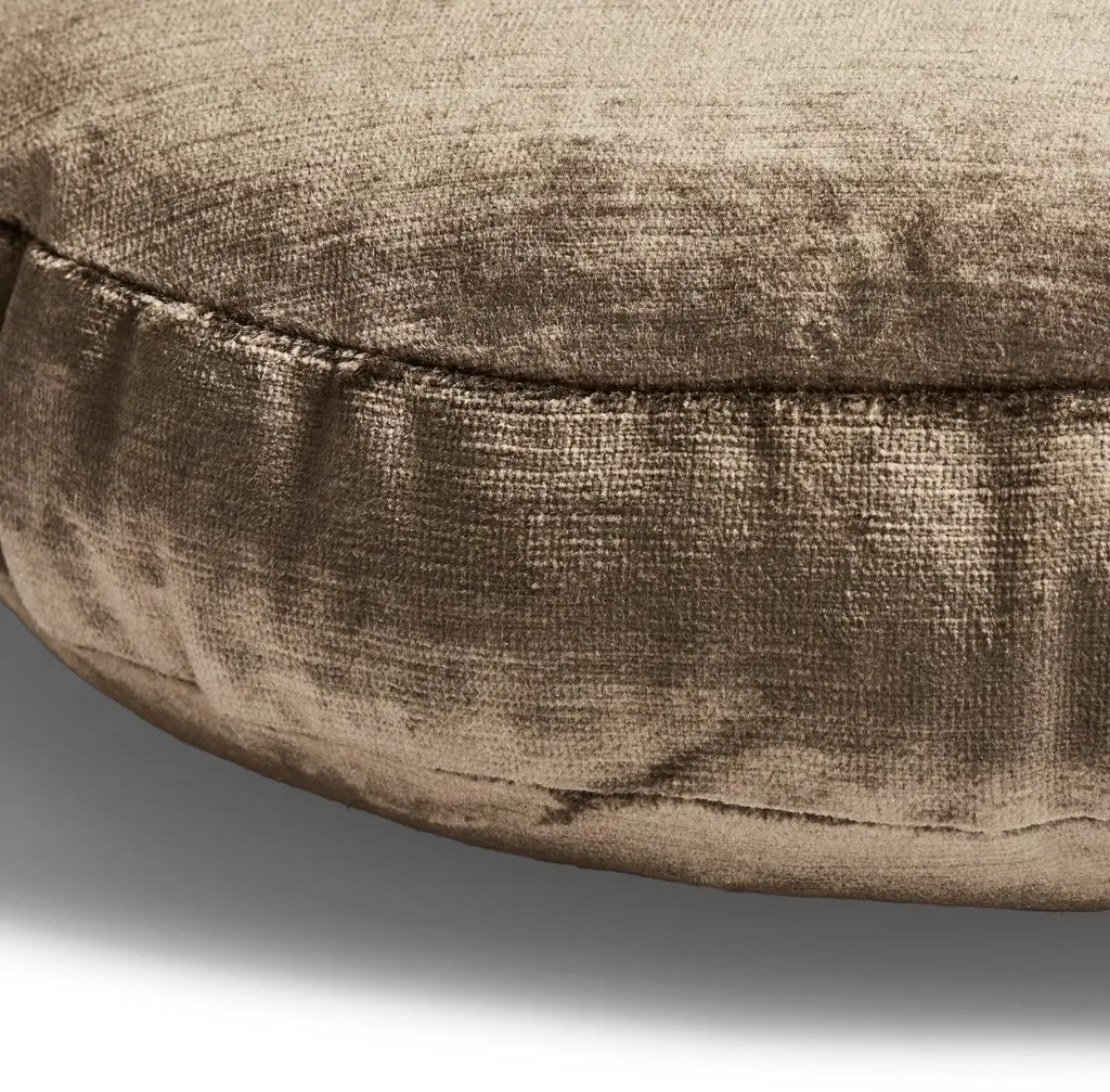 Designed by us and available only at One Kings Lane: Dress up a favorite sofa or chair with this disc-shaped pillow, made of plush velvet with self welting. We love how its unique shape adds a playful note. Insert included. Zipper closure.