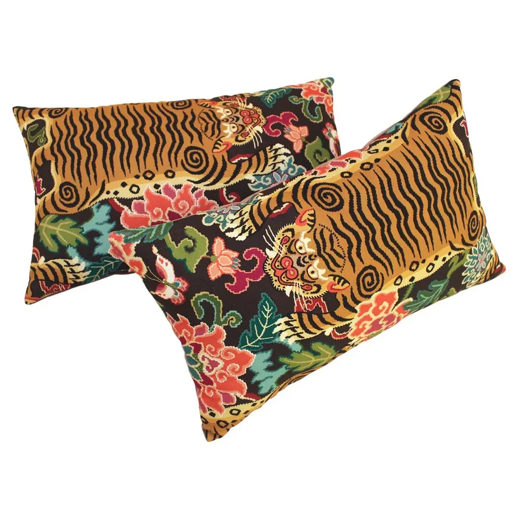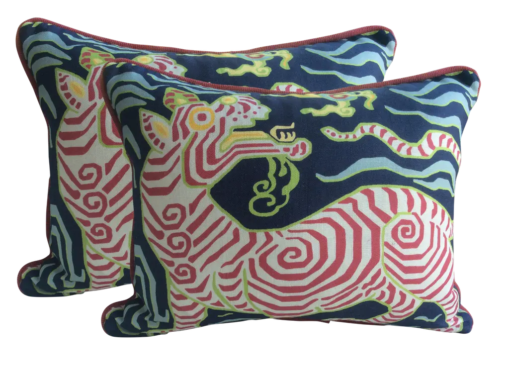 Clarence House "Tibet Dragon" Navy Linen & Down Pillows - A Pair