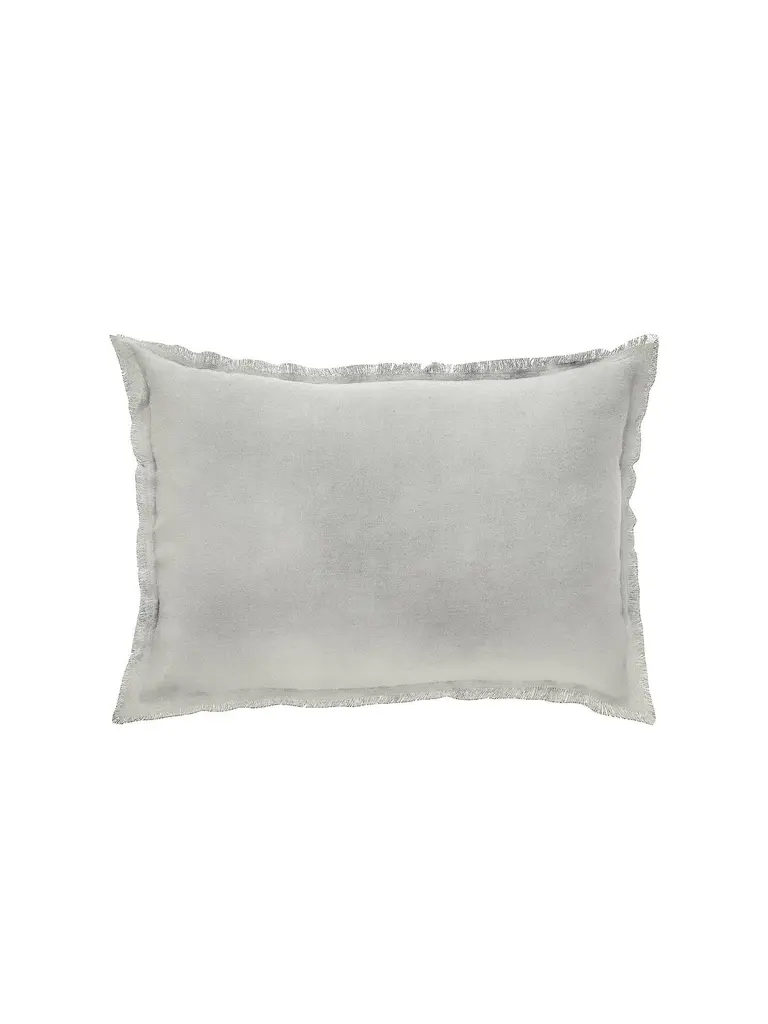 The Fringe Soft Linen Pillow is Soo soft- you won’t believe it's linen! This yarn has a slight nub which gives it a beautiful natural texture. Edges have a self-fringe on all sides. Sizes: 14"x20", 20"x20", 26"x26". Details Front & Back Color: Cloud Grey Front & Back side: 100% Linen (Pre-washed) Concealed zipper closure on back side. Spot Clean. Hang to Dry. Imported. Pillows are available in 3 options:Pillow Cover Only, with a Down Alternative insert, or with a Down InsertDown Alternative InsertBenefits: Allergen free, Better back support, Retain their shapeInside Fill: 1.2 denier x1.25" polyester gelOuter Shell: 65% polyester/ 35% white cotton blendMade in the USA Down InsertBenefits: Durable, Easy to fluff and re-style, Retains heatInside Fill: 95% gray duck feathers and 5% goose downOuter Shell: 233-thread count 100% cotton fabric Made in the USA