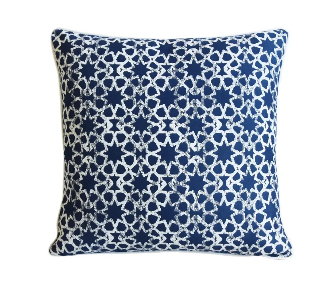 Custom-tailored designer blue and white geometric stars cotton blend fabric pillow by Perennials. Same fabric on the reverse. Custom cord trim. Zipper closure. New plump goose feather-and-down insert. Excellent new, unused condition!!! ***PLEASE NOTE: I will combine shipping whenever possible if you purchase multiple items from my shop. Warm regards, Mike Seratt ***Also, don't forget to peek at my other current listings...you might find something you can't live without!!! It's easy to click on my name to the right of any listing highlighted in black, "Mike Seratt of The Prized Pig" and presto will bring you to my storefront!!! Cheers!!! Mike Seratt I SHIP OUT IMMEDIATELY, SO THE ESTIMATION YOU SEE FOR THE DELIVERY TIMELINE IS CHAIRISH'S OVERALL GENERAL TIMELINE, BUT I WILL GET THIS OUT THE NEXT DAY AND DELIVERY IS USUALLY 5-7 DAYS AT MOST