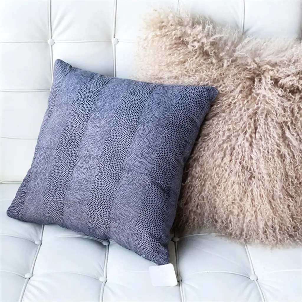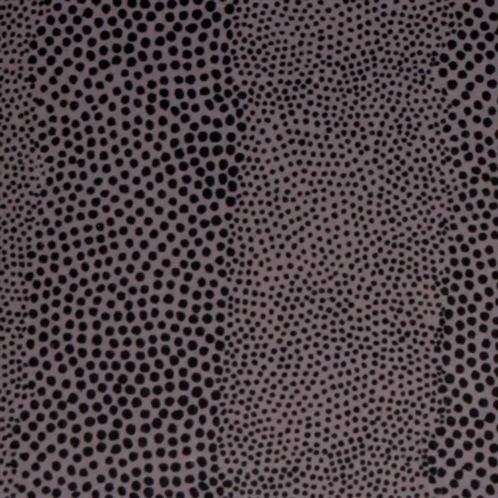 Bands of black dots in varying sizes on a charcoal gray background form the pattern in this cobra print pillow. Made from 100% cotton. Size: 17"x17" Square Fabric: 100% Cotton Same fabric, front and back Knife edge seams Zipper closure Machine Wash/Tumble Dry Low