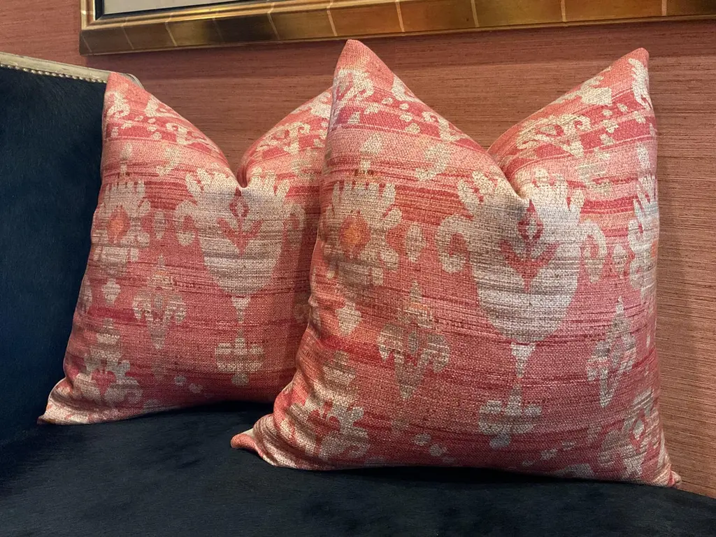 Colefax And Fowler From Cowtan And Tout -Brunello In Red Pillows- A 22" Pair