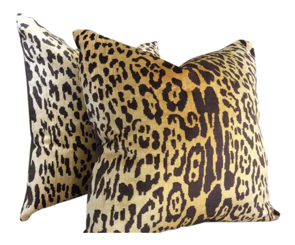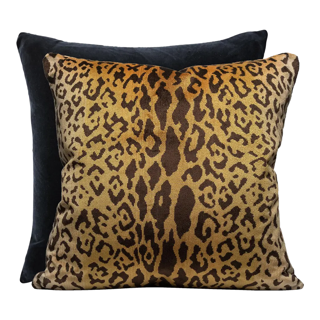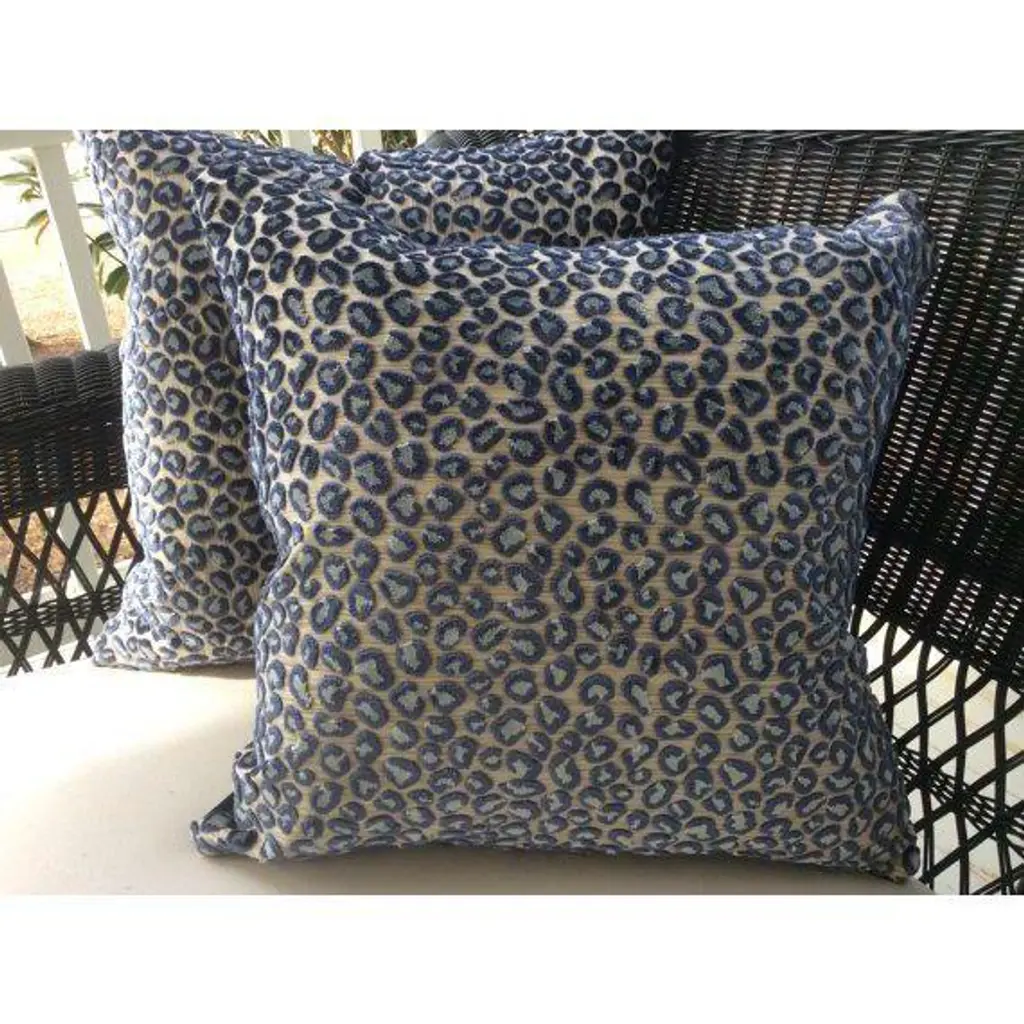 Colefax & Fowler Pillows In Blue Wild Leopard Raised Velvet - A Pair