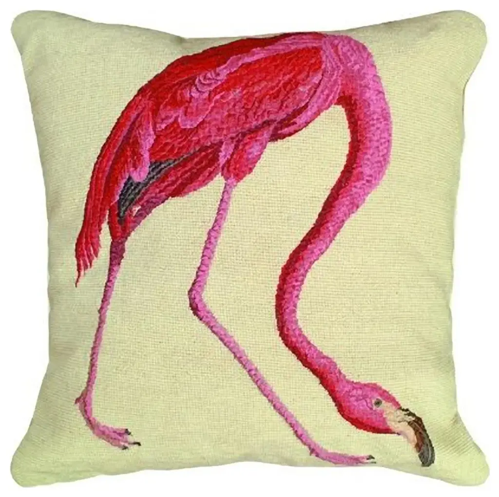 Discover the charm of colonial elegance with our Williamsburg-style needlepoint pillow, showcasing a beautifully detailed parrot design. This handcrafted piece uses high-quality 100% wool for the needlepoint and a luxurious cotton velvet back, featuring a practical zippered closure. Inspired by historical prints from the Colonial Williamsburg Foundation, it reflects the beauty of 18th-century wildlife art. The vibrant colors of the unique parrot design appeal to those who appreciate both art and history. Measuring 18 inches in both height and width and 5 inches in depth, this pillow is well-suited for enhancing any interior decor. Its plush polyester insert offers a comfortable support, making it an ideal addition to your favorite relaxation spot. Perfect for sofas, beds, and armchairs, it''s an artwork piece that captivates attention and invites conversation. Transform your living space into a tapestry of historic art with this splendid handmade pillow. - Dimensions: 18H x 18W x 5D - Condition: New - Material: 100% wool, polyester insert, cotton velvet zippered back - Style: Williamsburg - Subject: Parrot looking right - Bright, colorful bird pattern inspired by Colonial Williamsburg