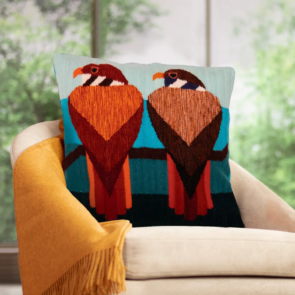 Colonial Williamsburg Parrot Pillow, Handmade Wool