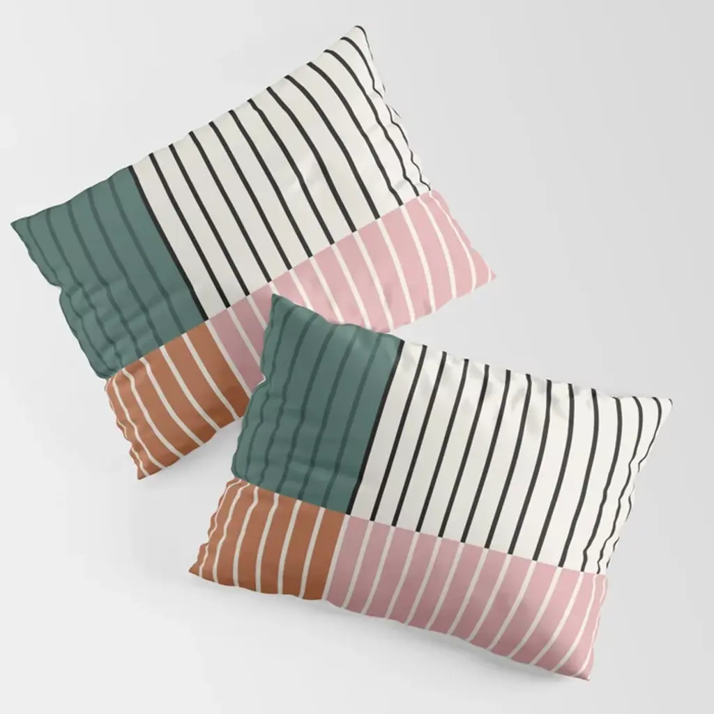 Color Block Line Abstract V Colorful Retro Throw Pillow