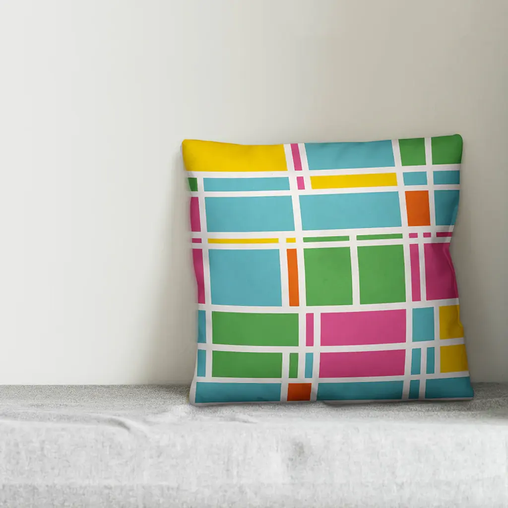 Colorful Block Stripe Bold Pattern Pink Green Orange Blue Throw Pillow