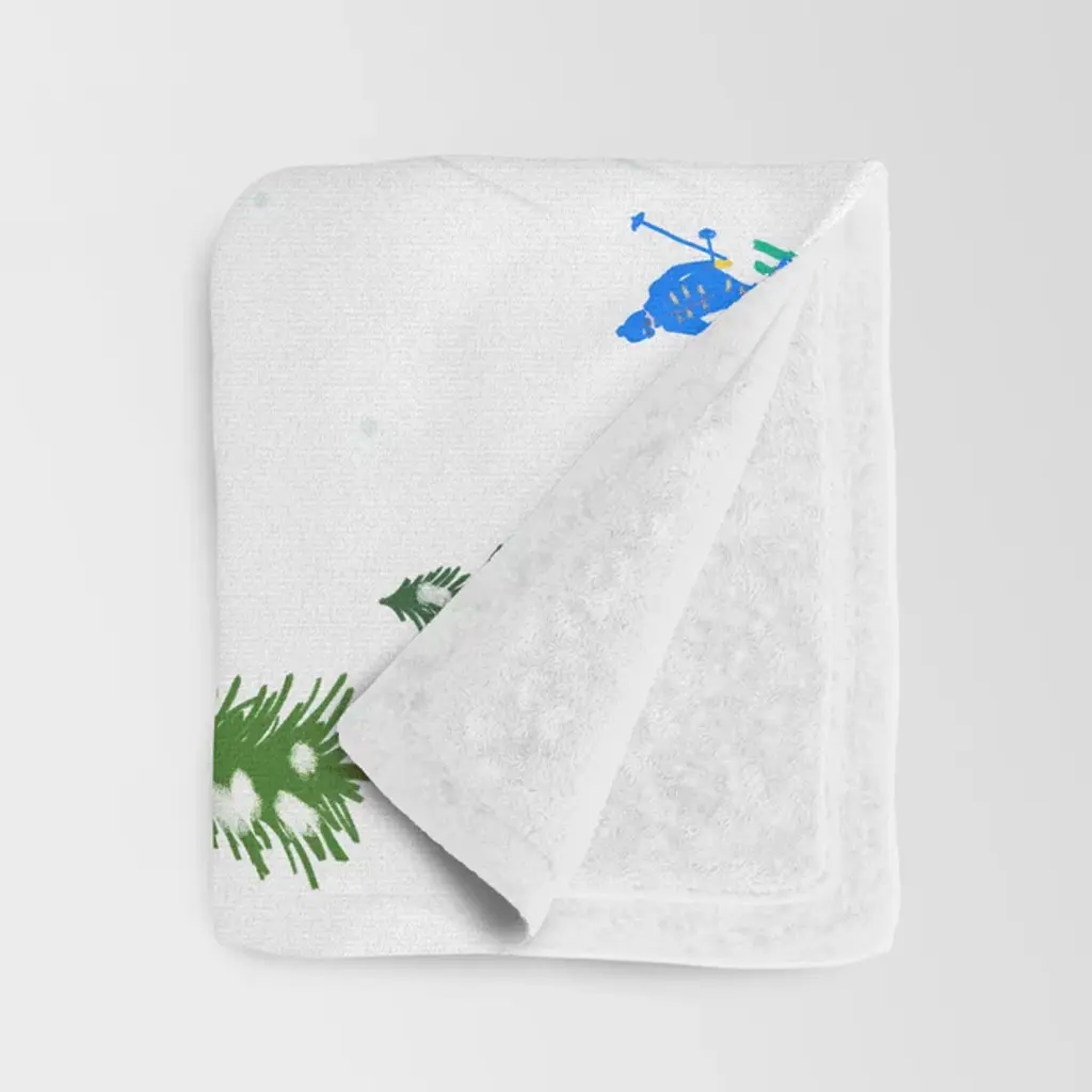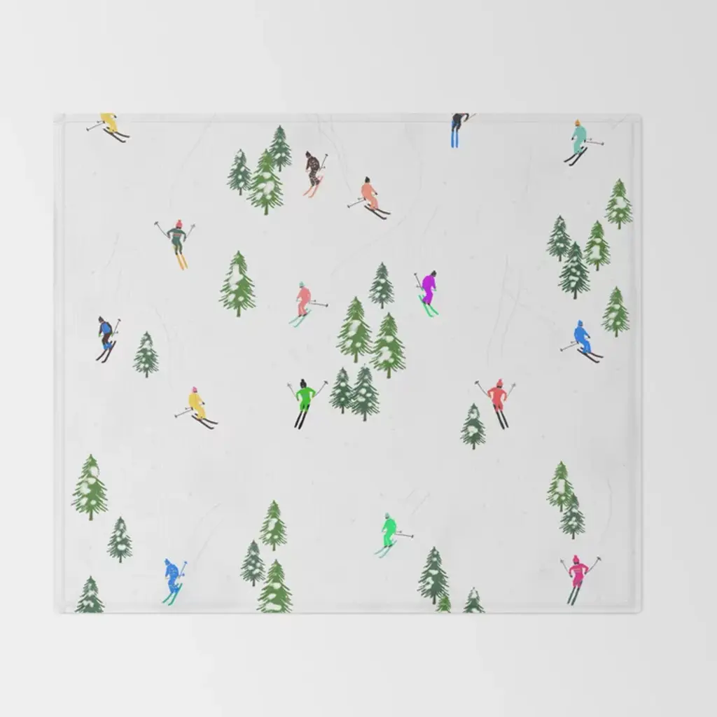 Colorful Downhill Mountain Skiers - Winter Skiing Illustration Throw Blanket