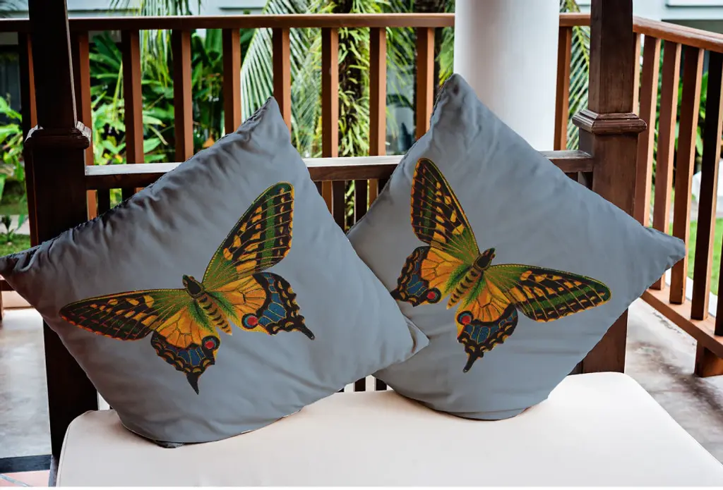 Let your decor take a walk on the wild side with our Colorful Swallowtail Pillow from our Animal Magnetism Collection. This eye catching animal print indoor/outdoor pillow will add fun and style to your porch, deck or patio. This decorative pillow is printed on both sides and crafted with a soft, durable polyester exterior, and filled with down alternative for a crisp look and a comfortable sitting experience. The fabric is resistant to weather, mold, and mildew so you can accentuate your indoor or outdoor decor. It is sewn closed with a knife edge and can be easily spot cleaned or dry cleaned. These designs will enhance your home with a ferocious passion you''re sure to love.