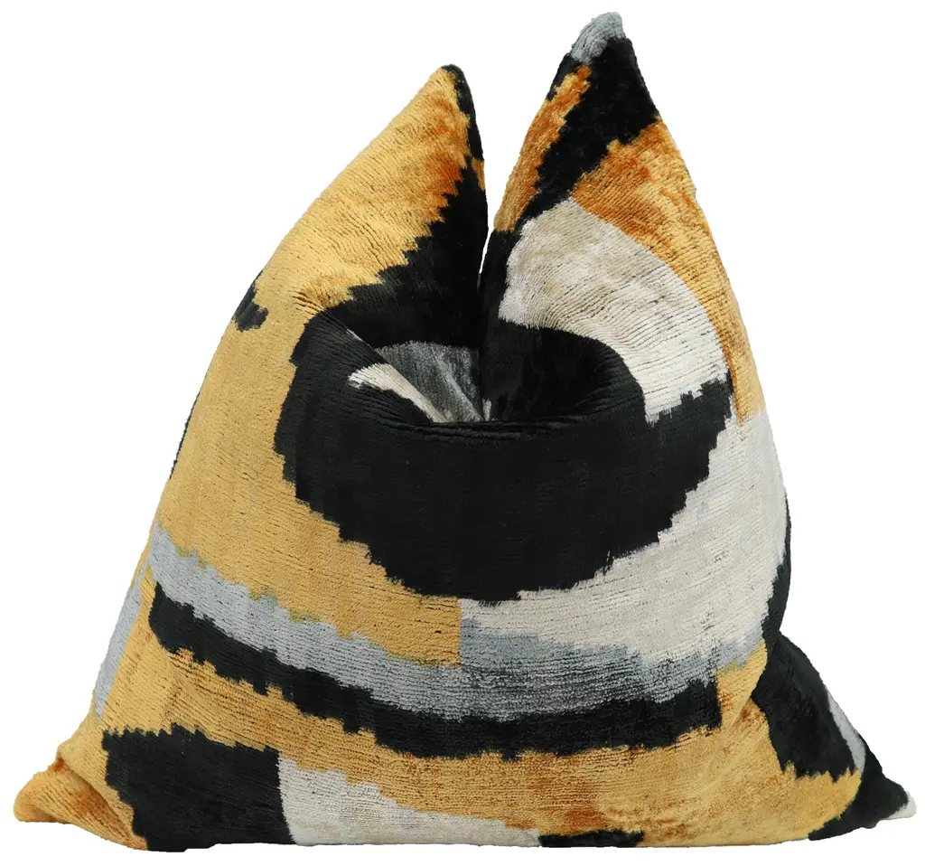 ● 100% silk velvet material making the throw pillows super soft and cozy with a delicate touch and giving your room a more elegant look. ● Handmade pillows MADE IN TURKEY: these throw pillows are handmade, made in TURKEY. A matching colored zipper closure is used which is almost invisible giving the pillow a neat and more pleasant look. ● PREMIUM DOWN FEATHER INSERT INCLUDED (The down feather filling feels fluffy and gives your body excellent support.) ● IKAT Design and Tiger Print give these throw pillows a more artistic, a sort of a traditional look. Matching with throw pillows of different colors suitable with the color tone these velvet throw pillows will make your living room more lively and bright. ● A high-quality 100% silk velvet fabric used to make this throw pillow not only gives it a rich look but also makes it durable and increases its life. ● Suitable for your couch, patio, chair, bed, sofa in the bedroom, living room, office, or even in your car. This super soft and cozy throw pillow is a cool gift for your granny, parents, your siblings, or your friends.