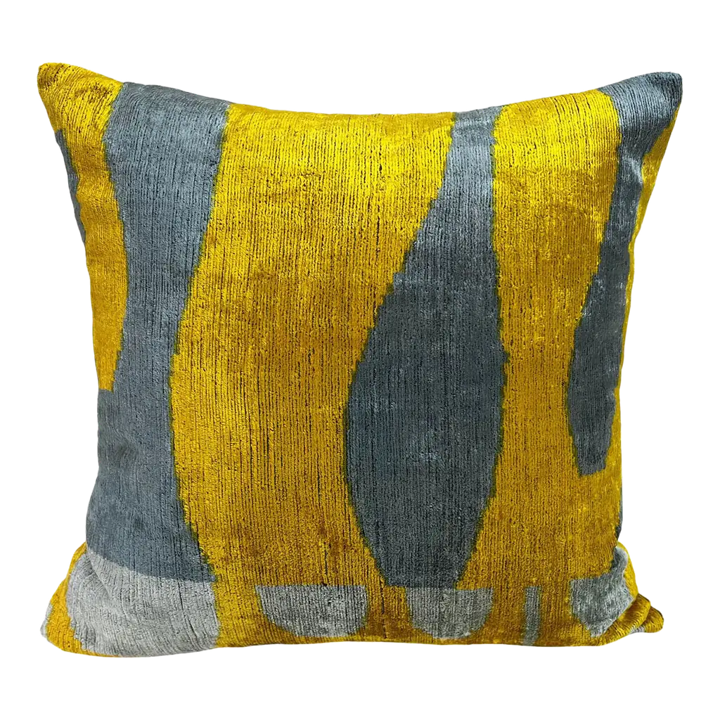 Contemporary Gray Gold Handmade Velvet Throw Pillow & Down Insert