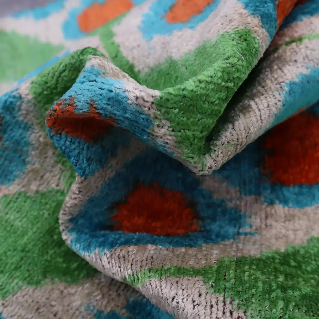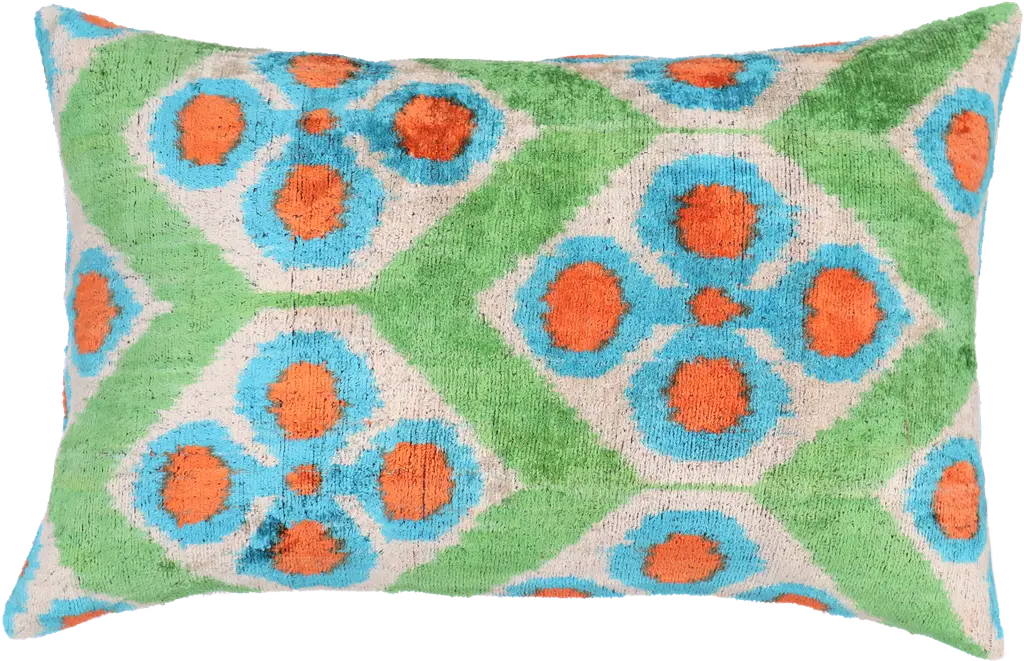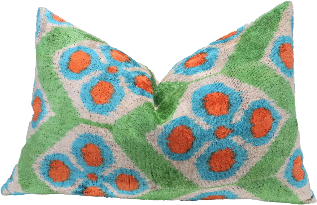 Contemporary Green Turquoise Orange Velvet Throw Pillow & Down Insert