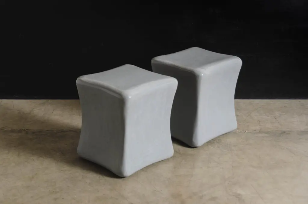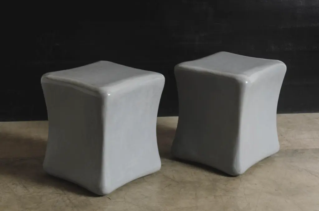 Contemporary Grey Lacquer Short Pillow Drumstool By Robert Kuo, Limited Edition