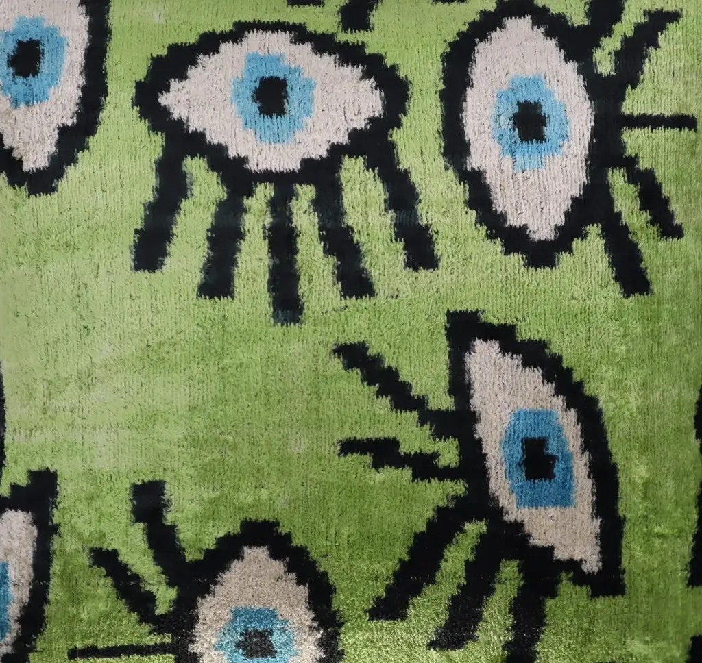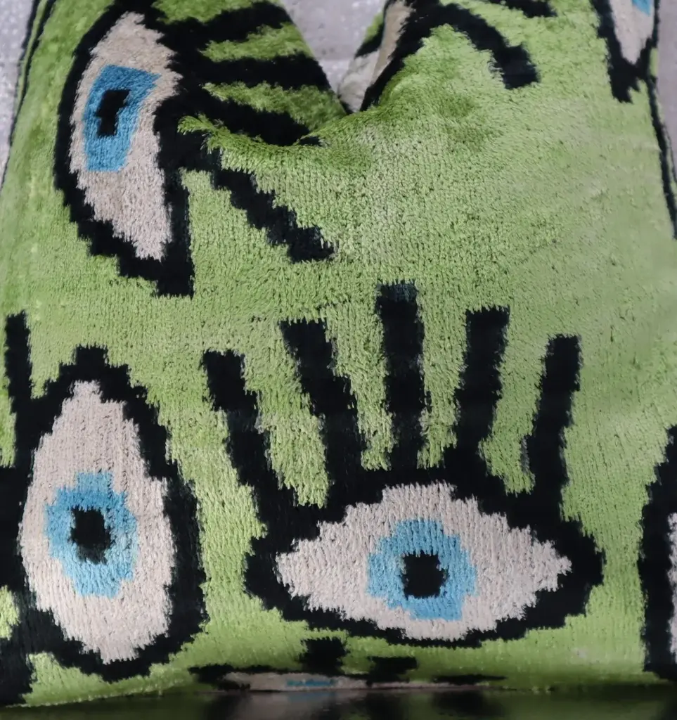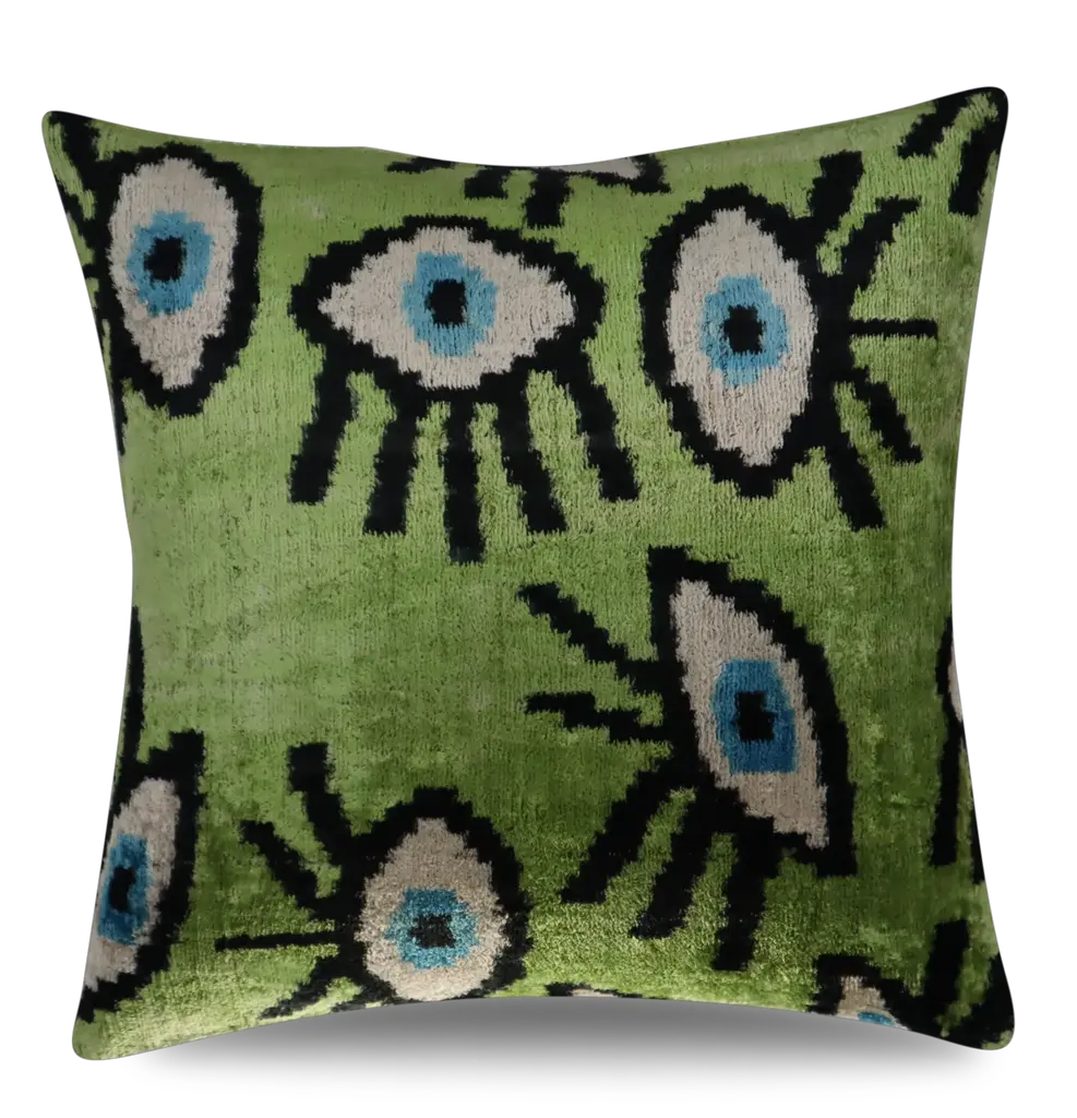 Handmade Luxury Velvet Silk Evil Eye Pattern: This decorative pillow cover is handmade with care, ensuring a unique and high-quality product. Premium Down-Filled Cushion Cover: The included down feather insert provides a plush and comfortable feel, perfect for relaxation. Quality Check in the USA: This pillow cover has undergone thorough quality checks in the USA, ensuring it meets high standards. PERFECT GIFT for your loved ones during Housewarming, Thanksgiving in fall or Christmas Hidden Zipper: The hidden zipper design ensures a seamless and polished look, perfect for any decor style. The pattern has only one side. Back is high quality linen, Down Feather pillow inserts are included. super soft and cozy, perfect for sofa, couch,bed, home, living room, office, car,