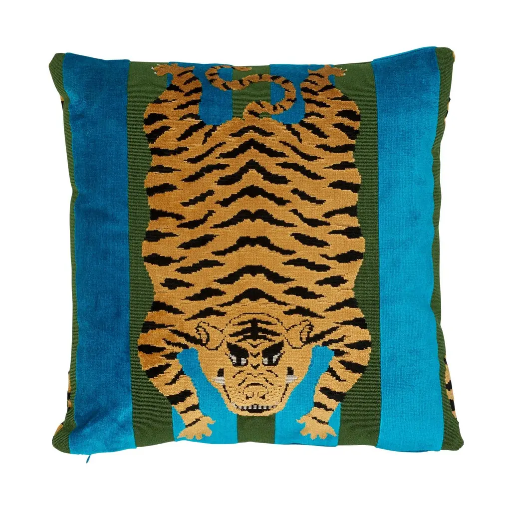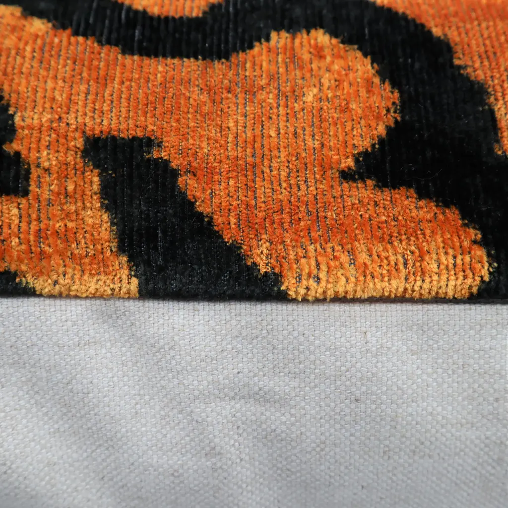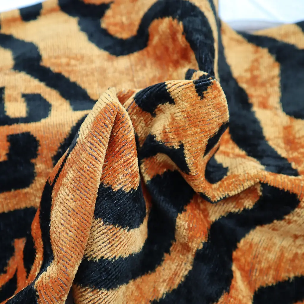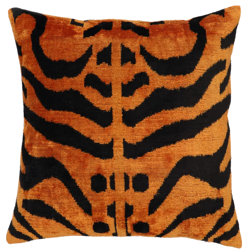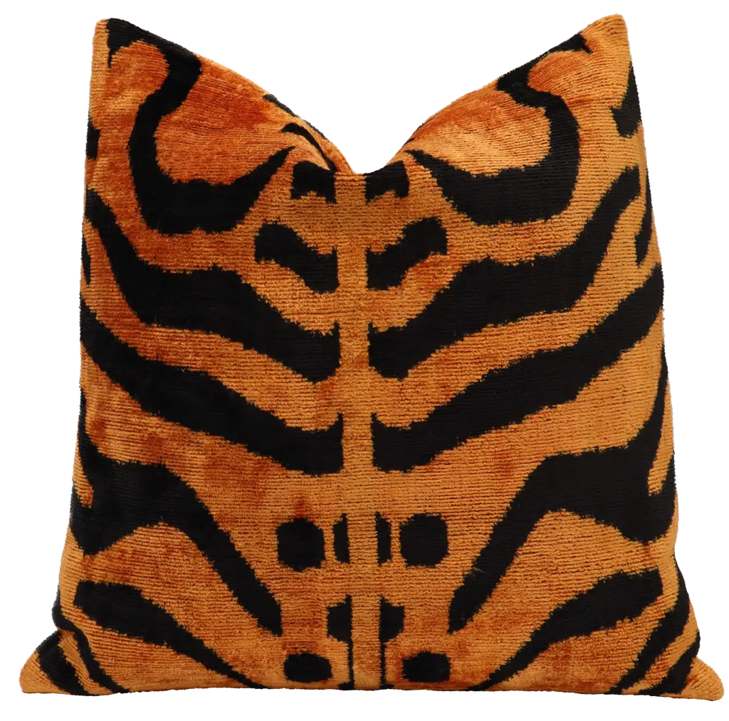 Contemporary Handmade Velvet Tiger Print Orange Throw Pillow & Down Feather Insert