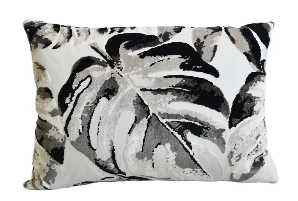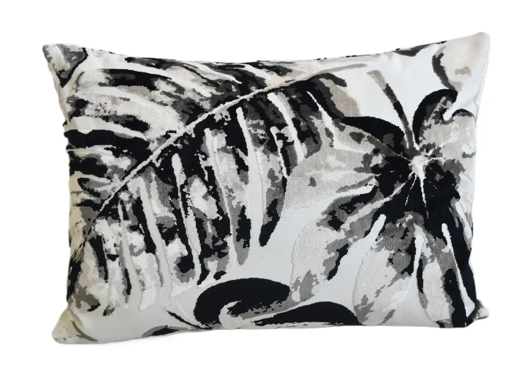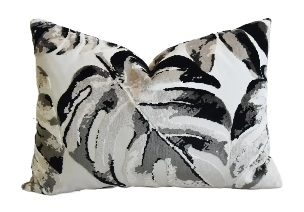Contemporary Modern Botanical Leafy Velvet Feather/down Pillow 24” X 18”