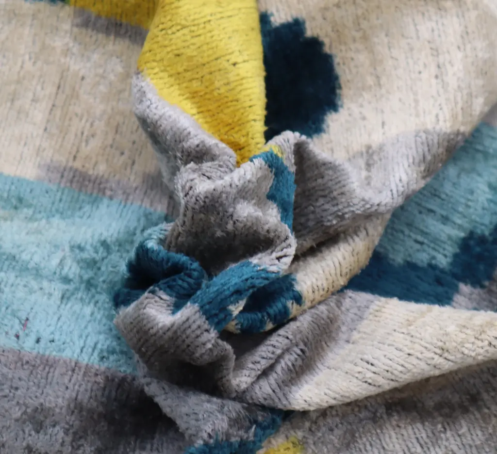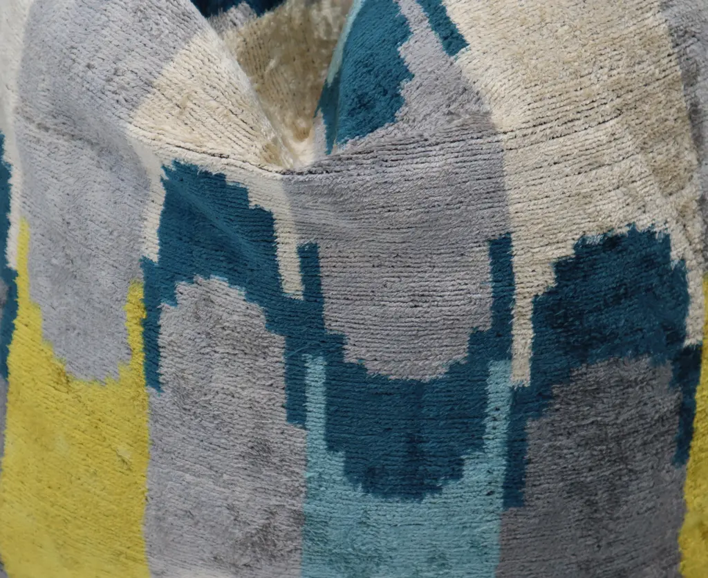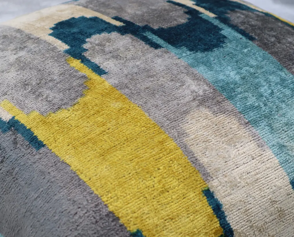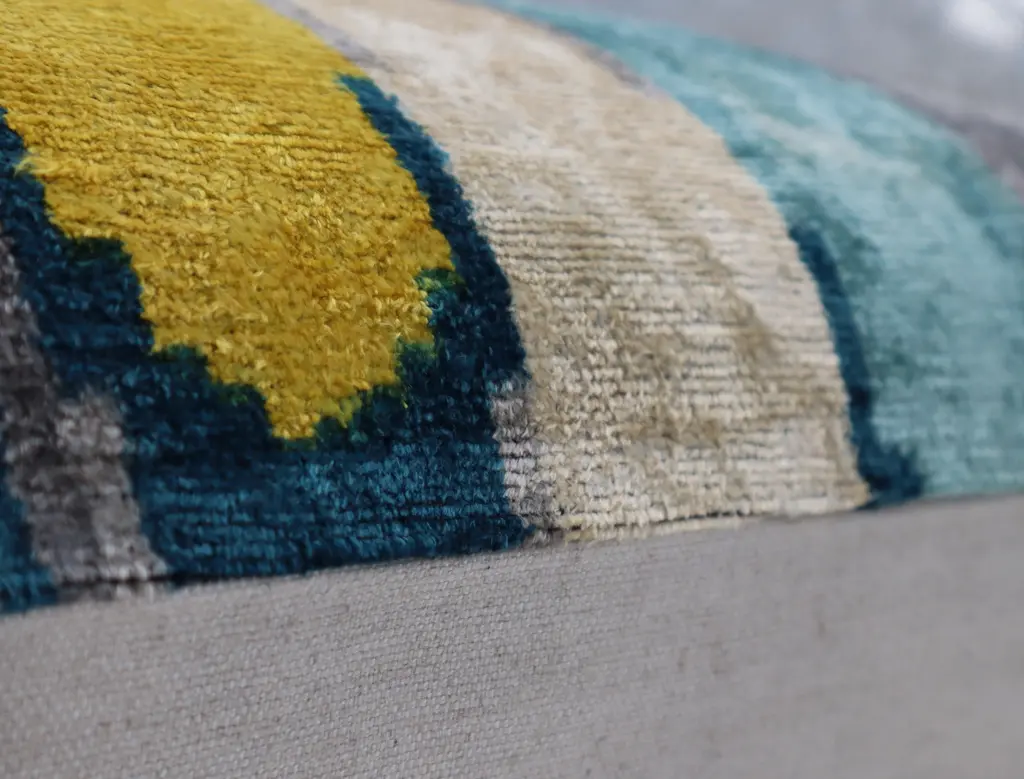 Contemporary Multi Color Handmade Velvet Throw Pillow & Down Insert