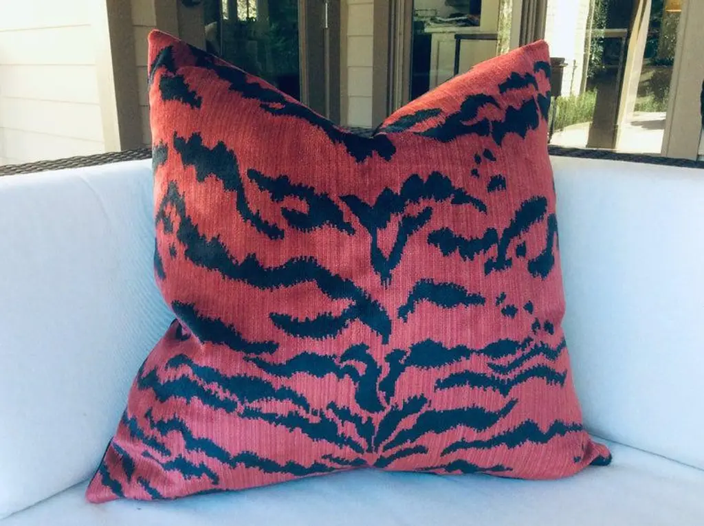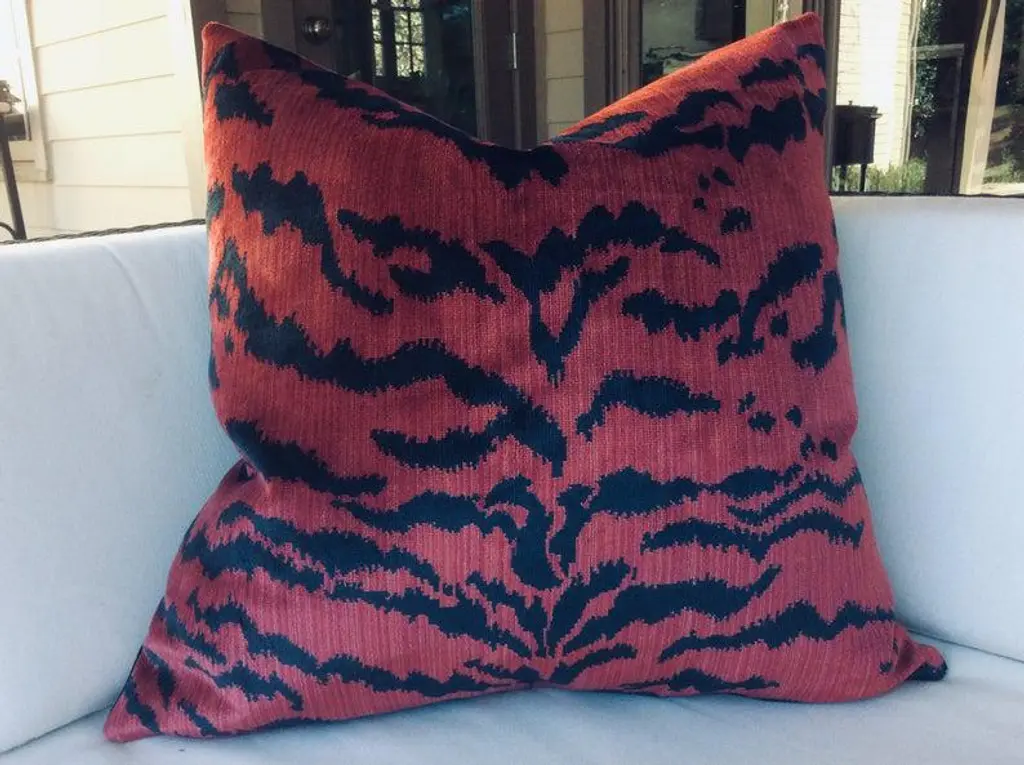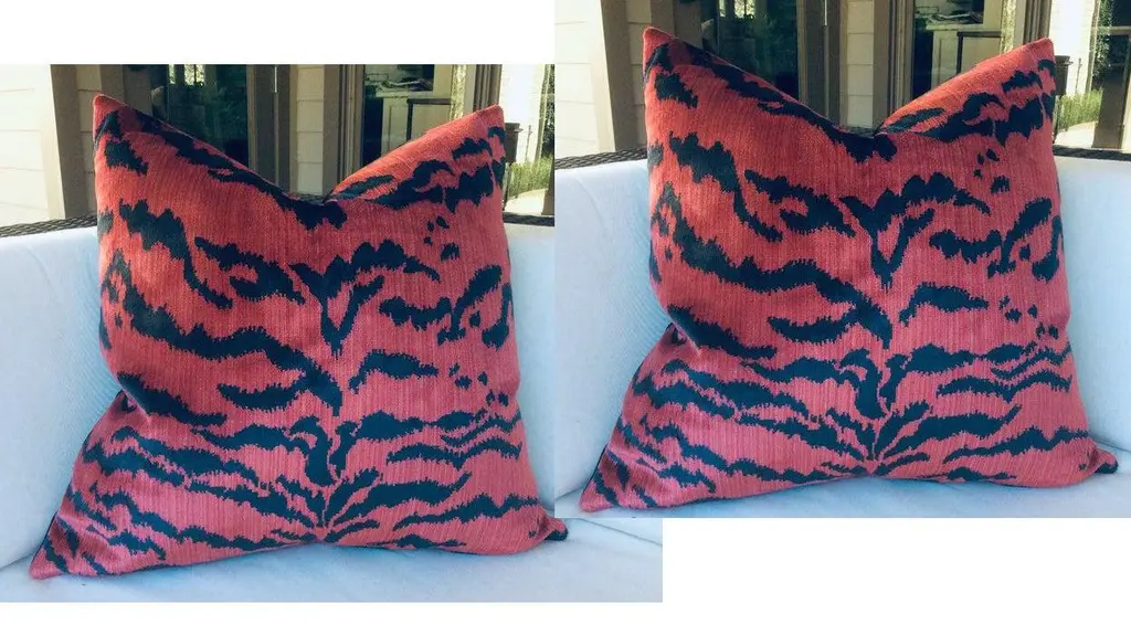 Contemporary Scalamandre "Le Tigre" Pillows In Red And Black - A Pair
