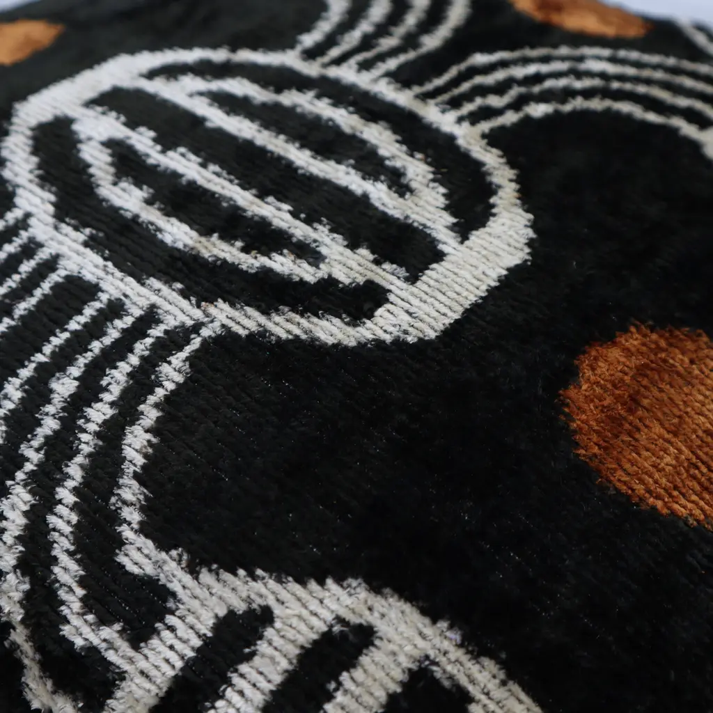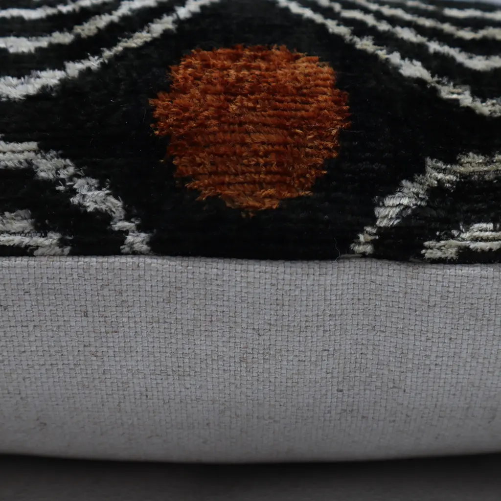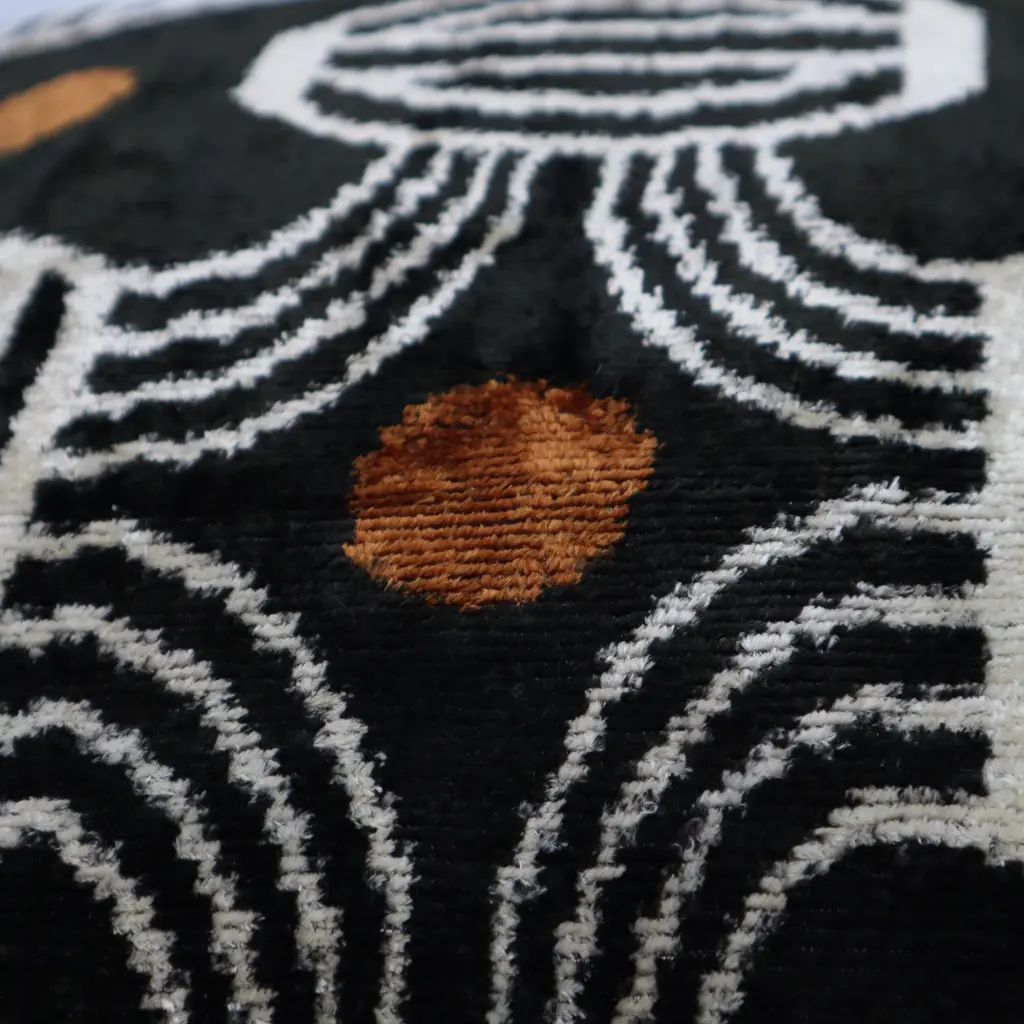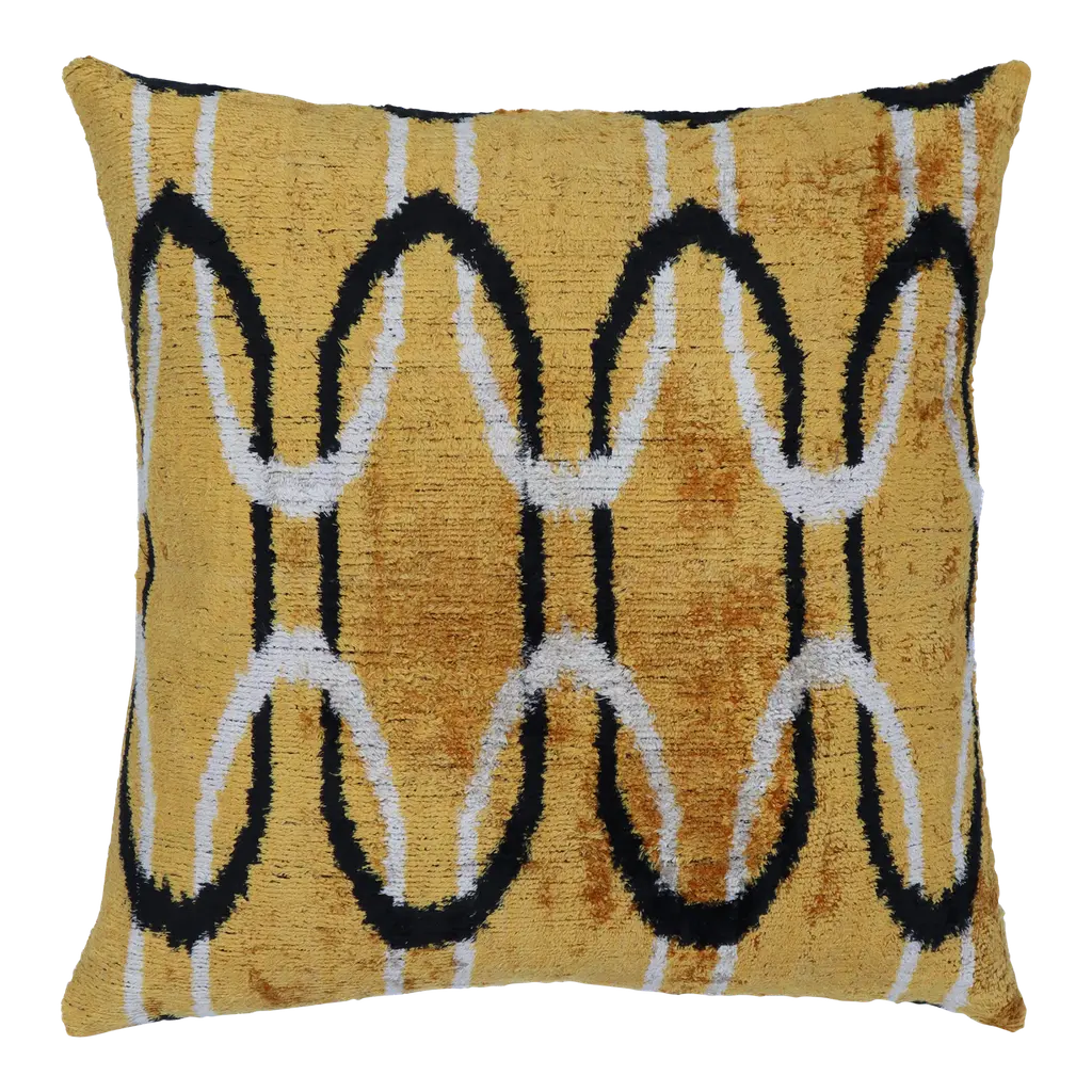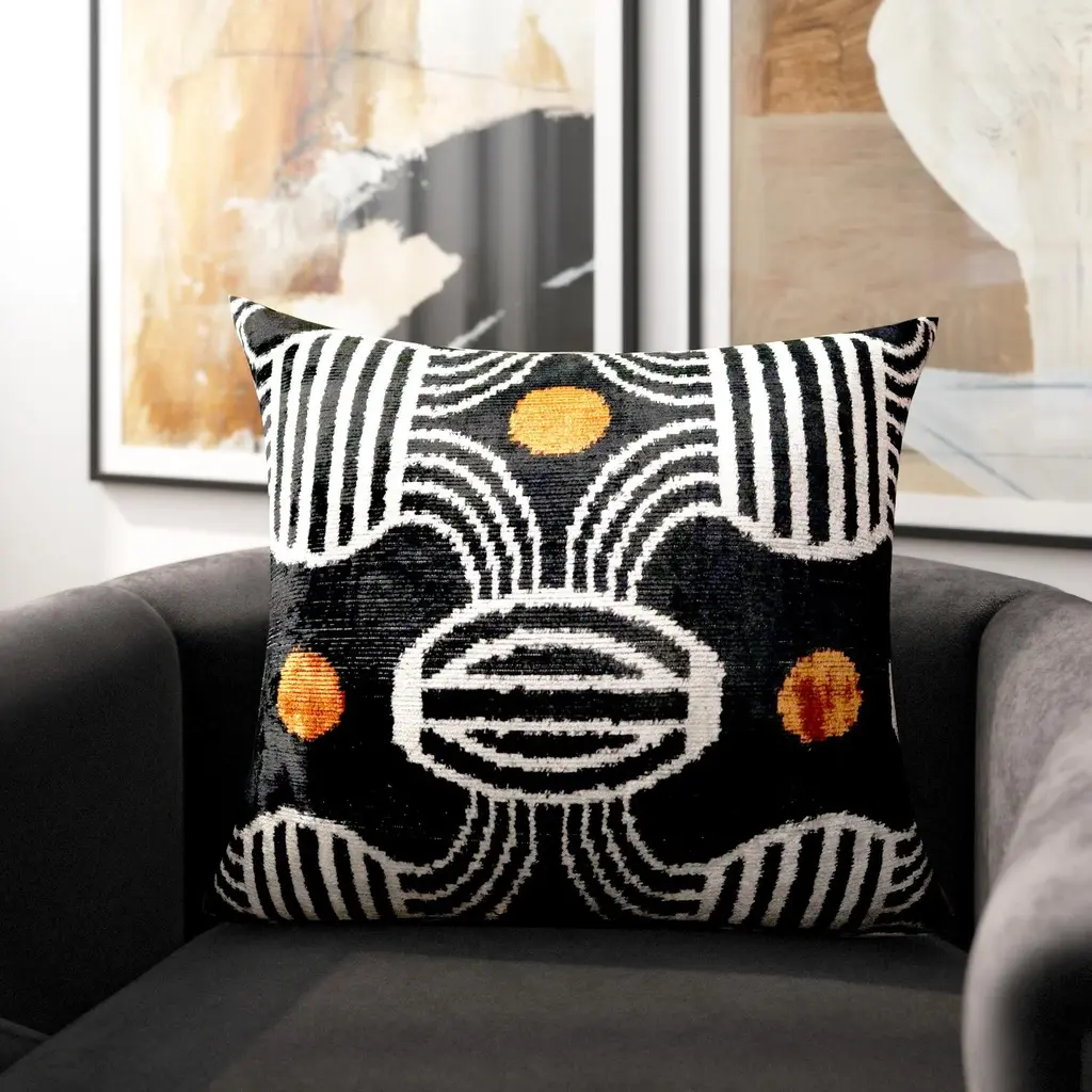 Contemporary Velvet Gold, Black & White Throw Pillow With Down Insert