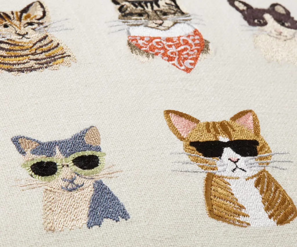 Curl up on the couch with this embroidered pillow, which features our favorite furry friends in cute collars and sunglasses. Part of our Rifle Paper Co. ⨯ Loloi collection.