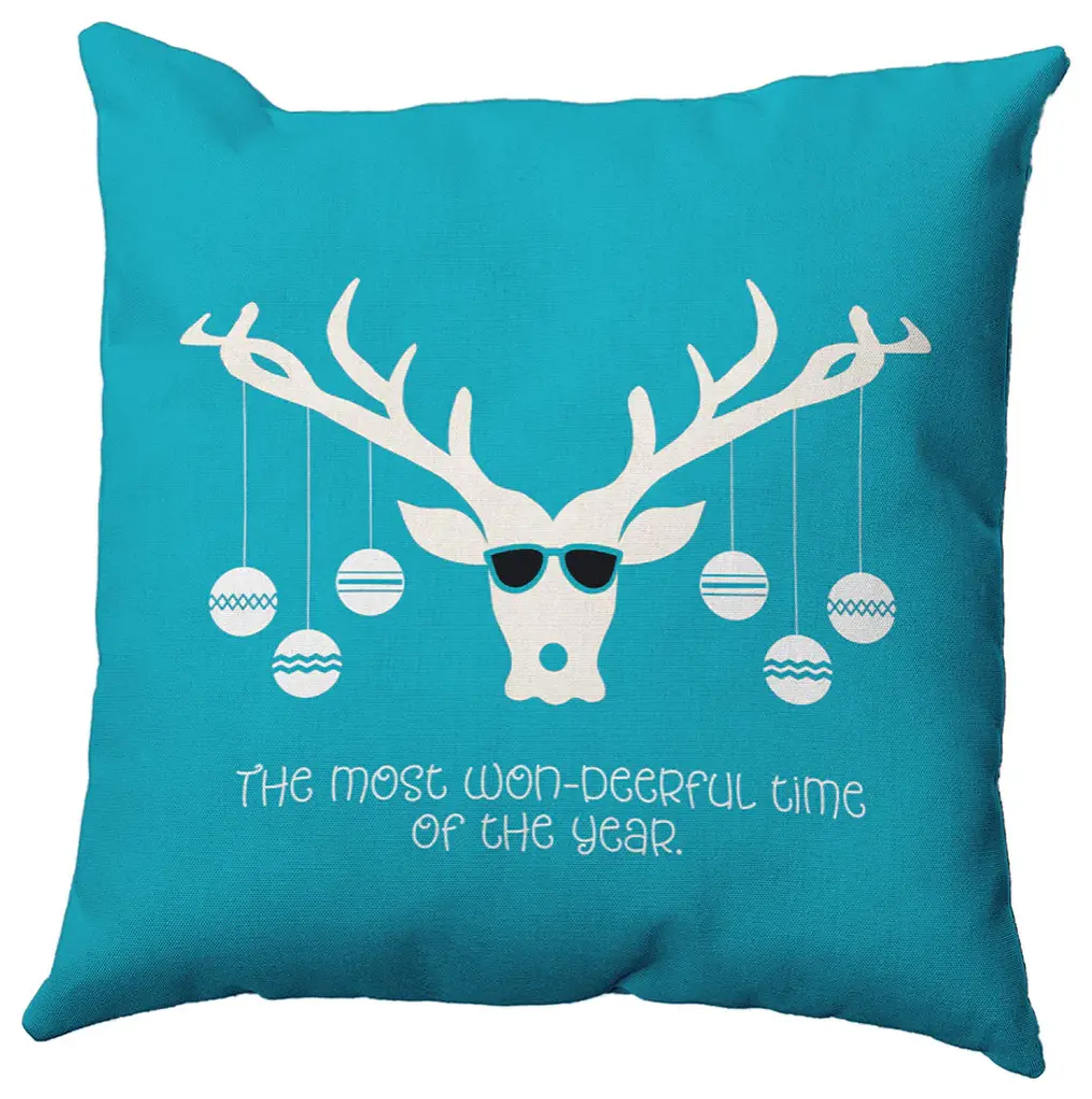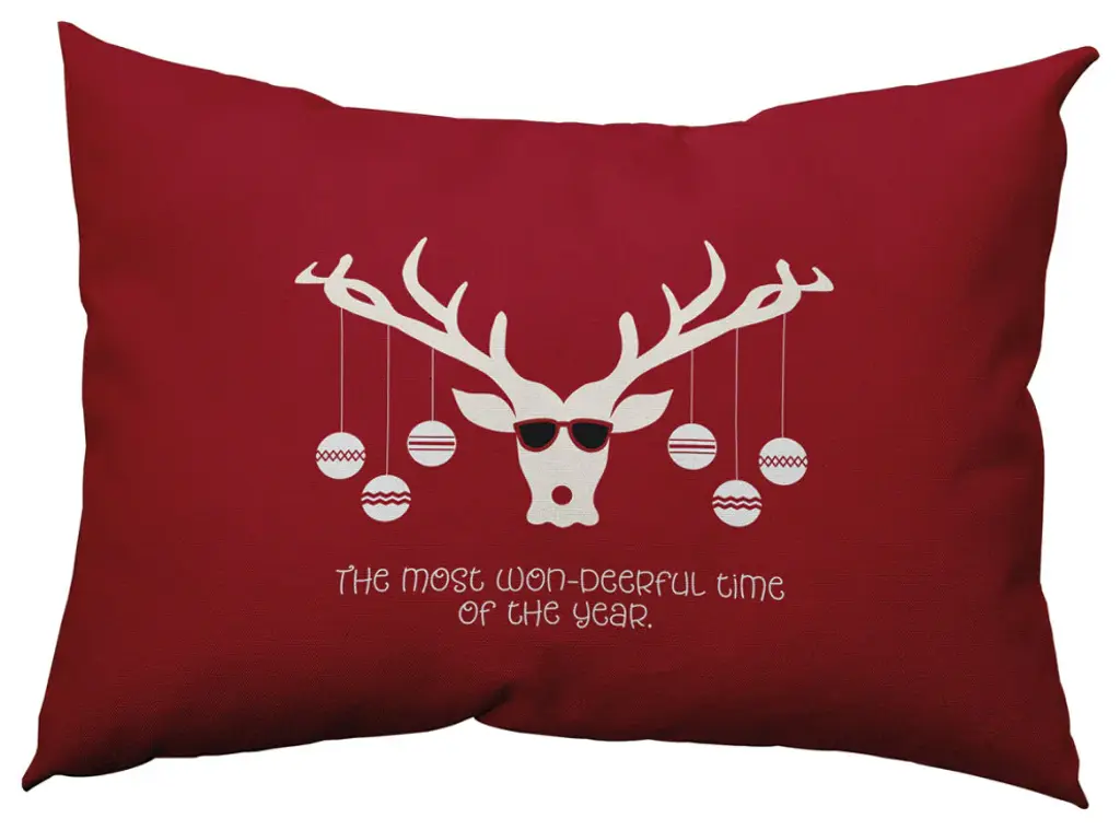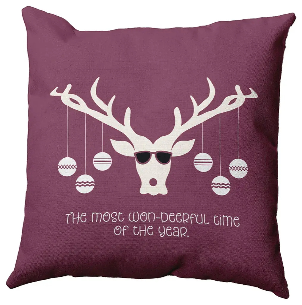 Styling your home for the holidays has never been so easy than with a Cool Christmas Deer Pillow from our Holiday Cheer Collection. This indoor/outdoor pillow will add style to your porch, deck or patio! This decorative pillow is printed on both sides and crafted with a soft, durable polyester exterior, and filled with down alternative for a crisp look and a comfortable sitting experience. The fabric is resistant to weather, mold, and mildew so you can accentuate your indoor or outdoor decor. It is sewn closed with a knife edge and can be easily spot cleaned or dry cleaned. You''re bound to adore the holiday atmosphere brought to your home with these stunning designs to make your home merry and bright.