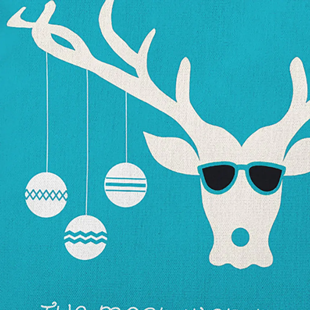 Cool Christmas Deer Indoor/outdoor Throw Pillow, Turquoise, 18"x18"