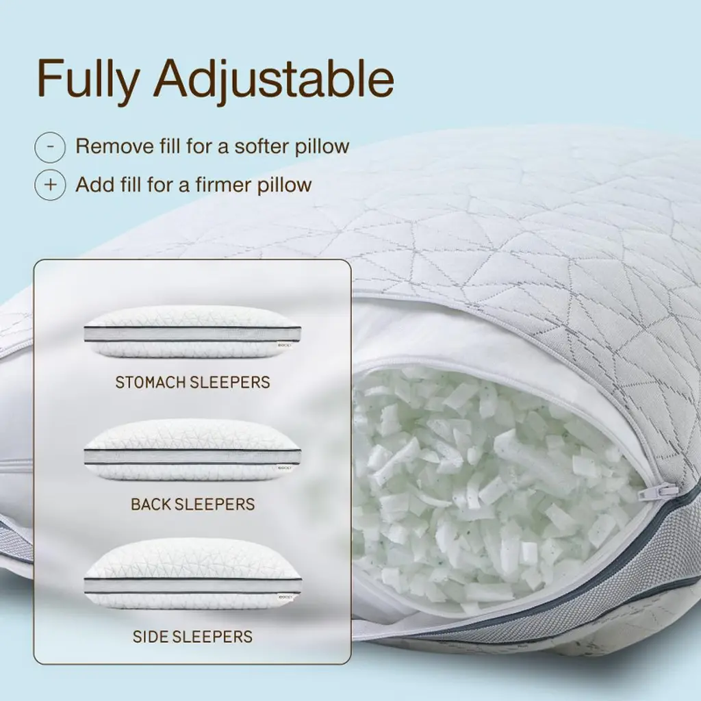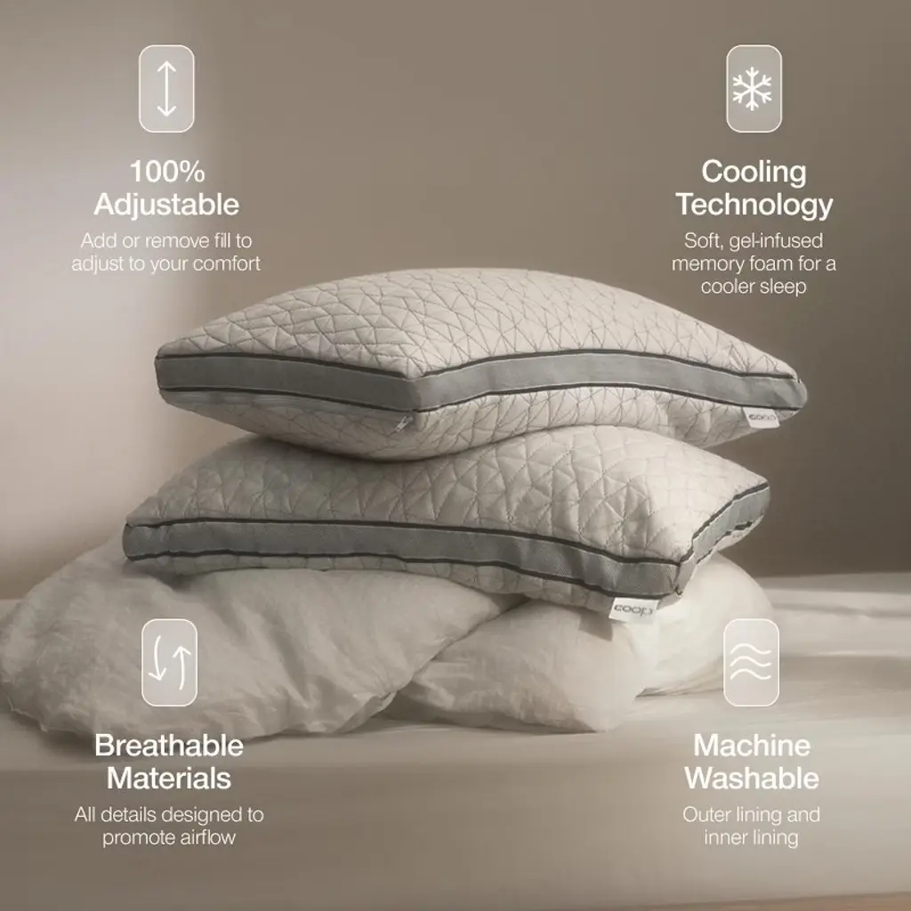 Coop Home Goods The Eden Cool Adjustable Pillow, Queen Size For Sleeping On Back, Stomach And Side Sleeper- Medium Soft Memory Foam Cooling Gel
